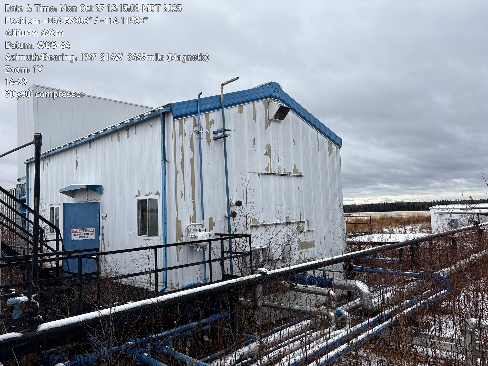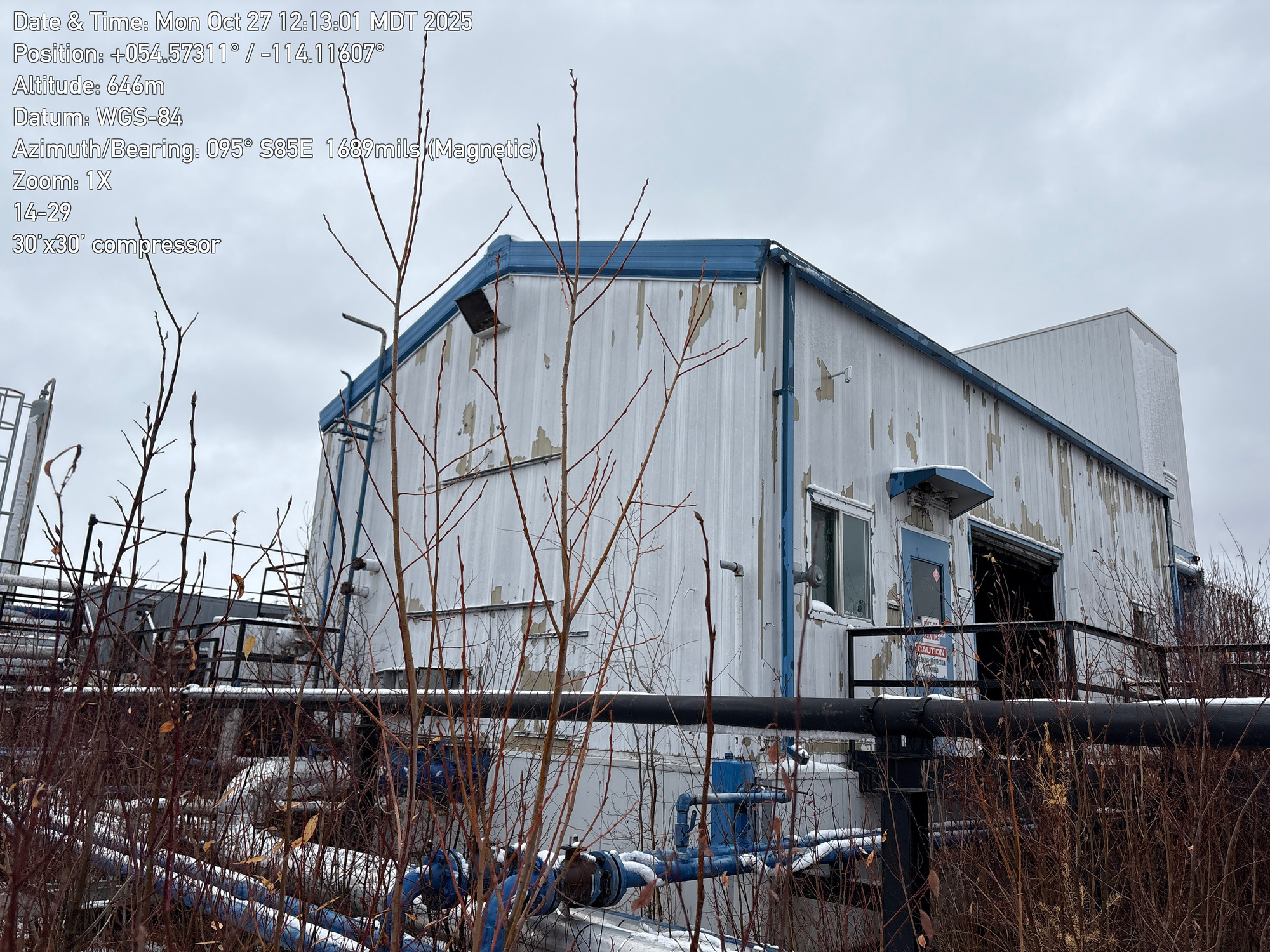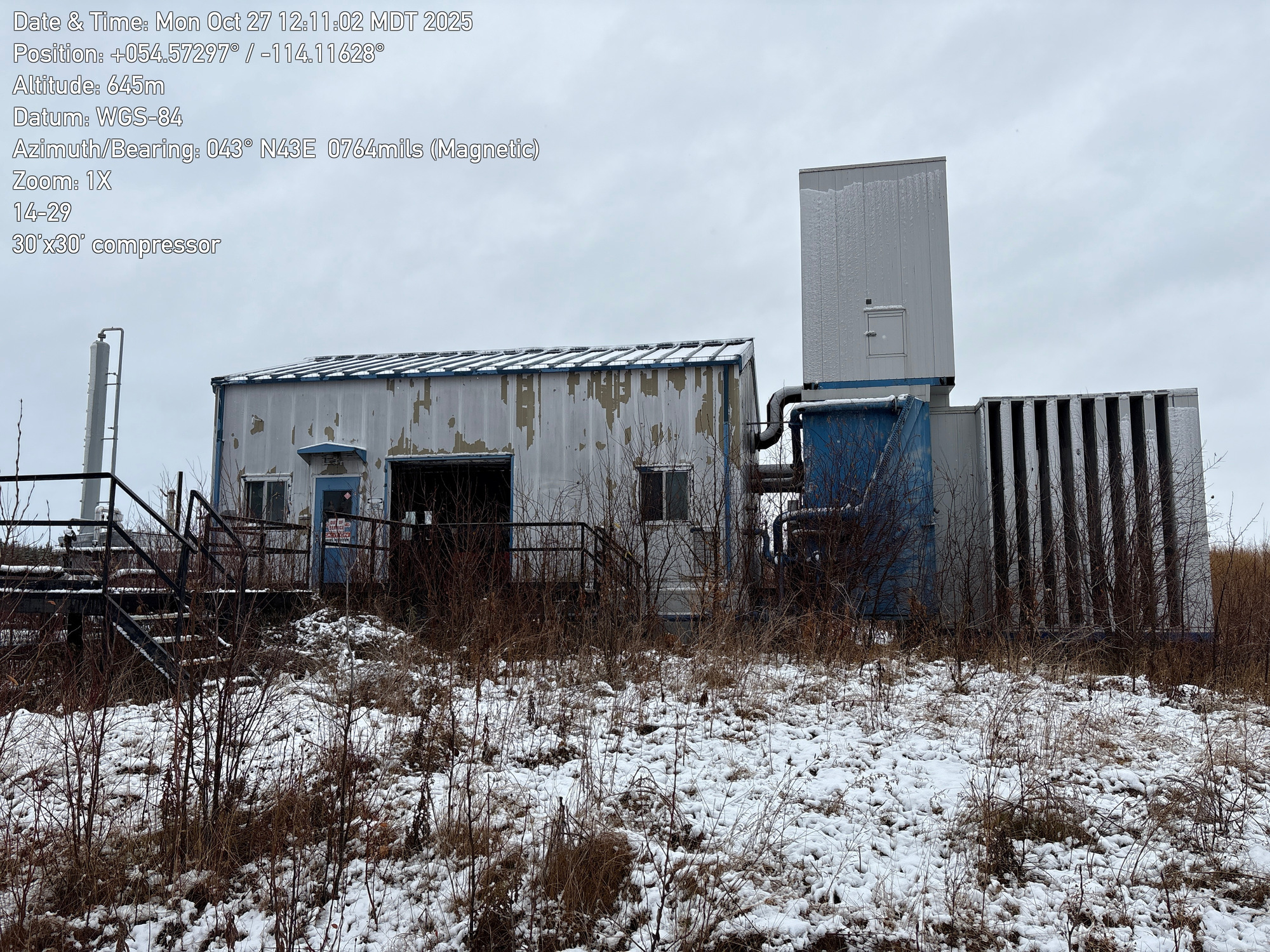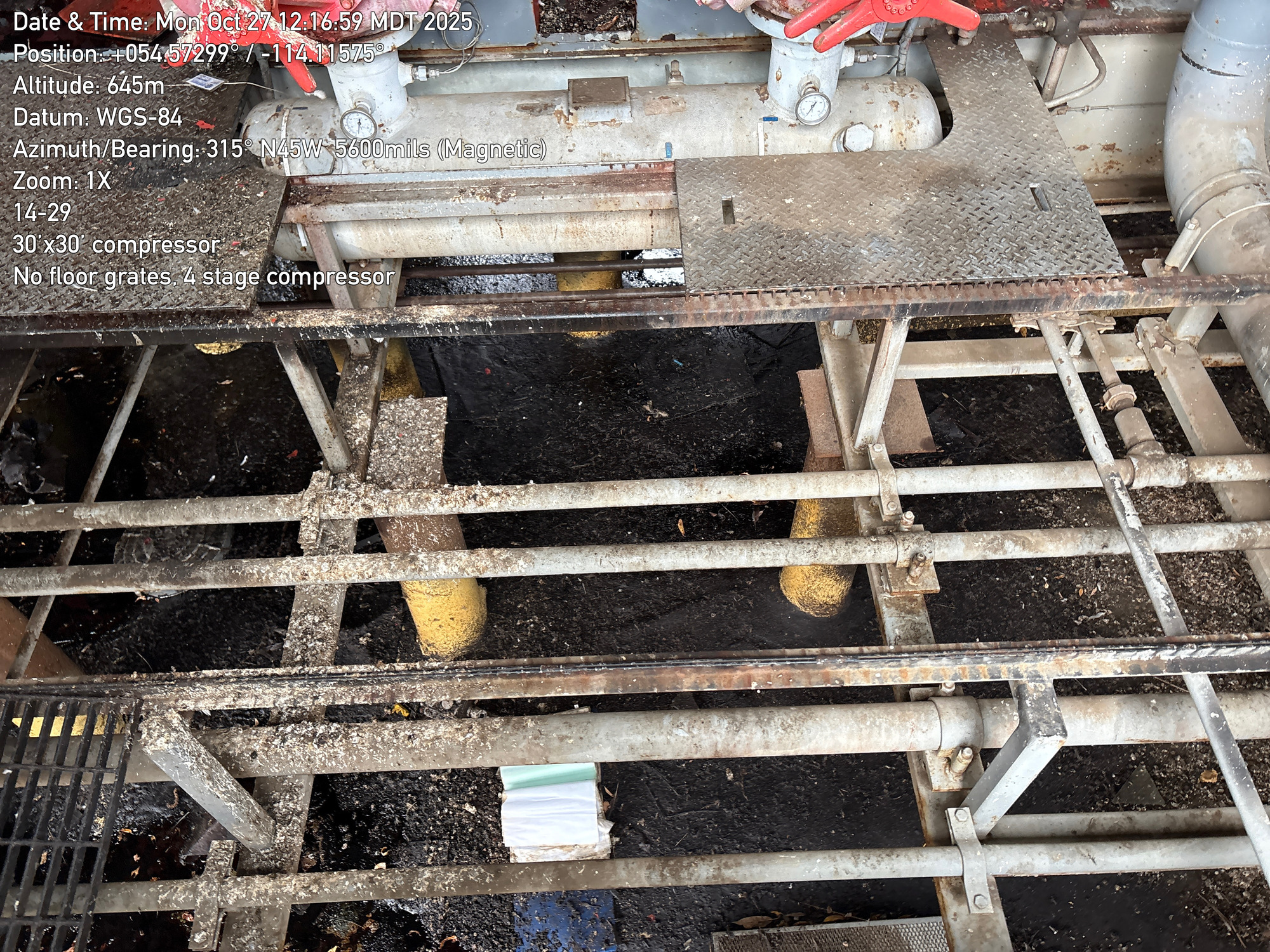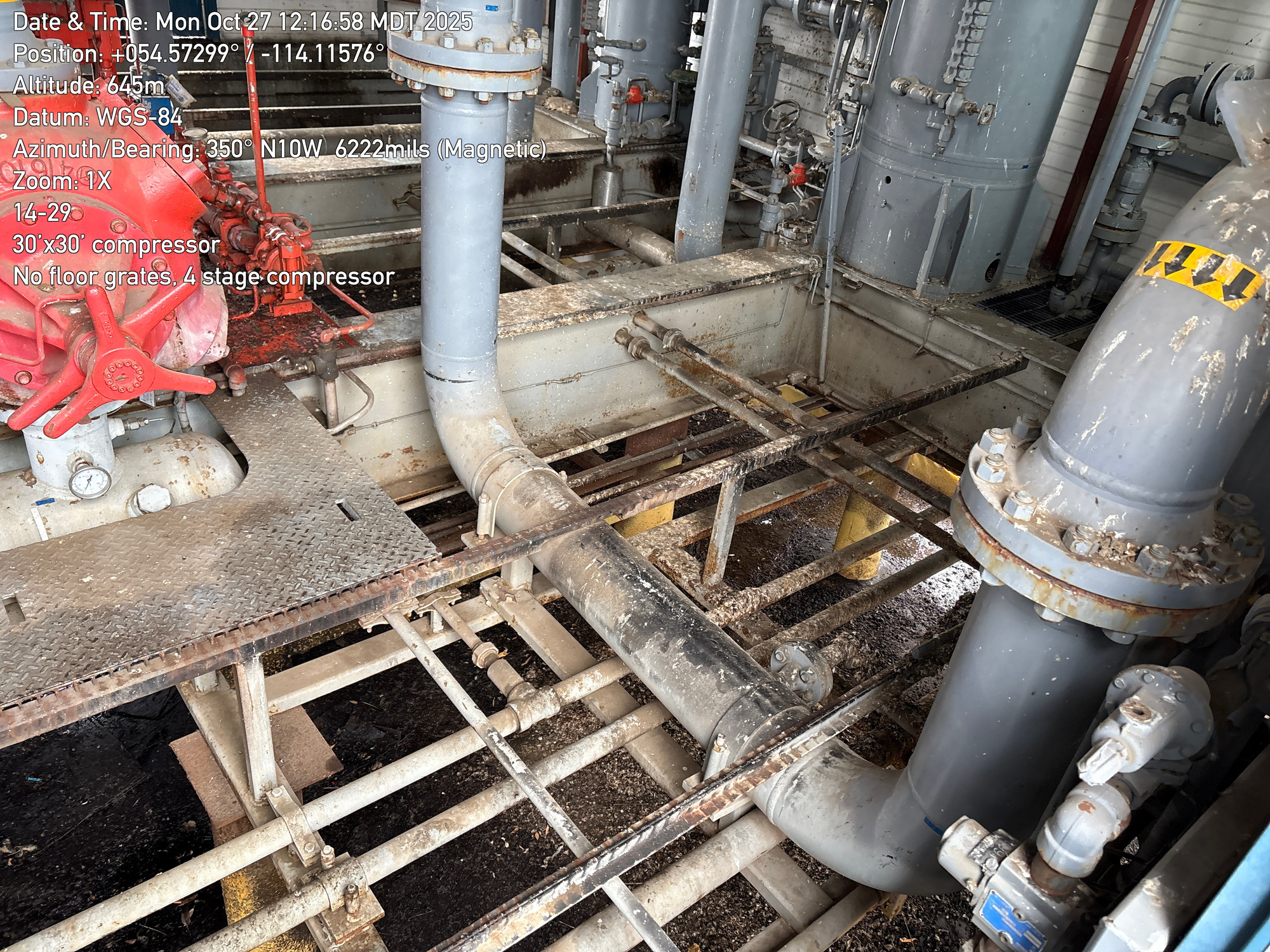 4 stage compressor with a 12 cylinder engine, inside a 30'x30 building with 2-ton crane located at 14-29-064-01W5 (FA). Lots of bird droppings.