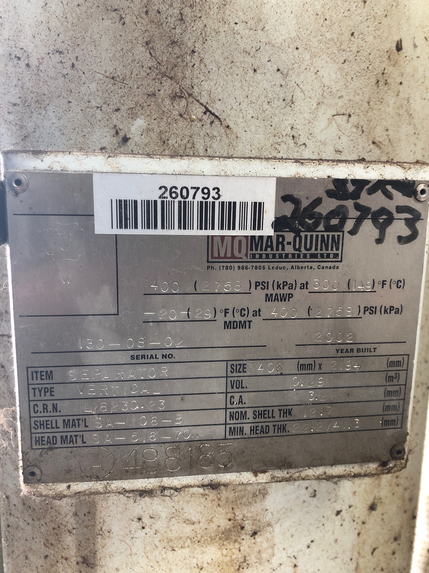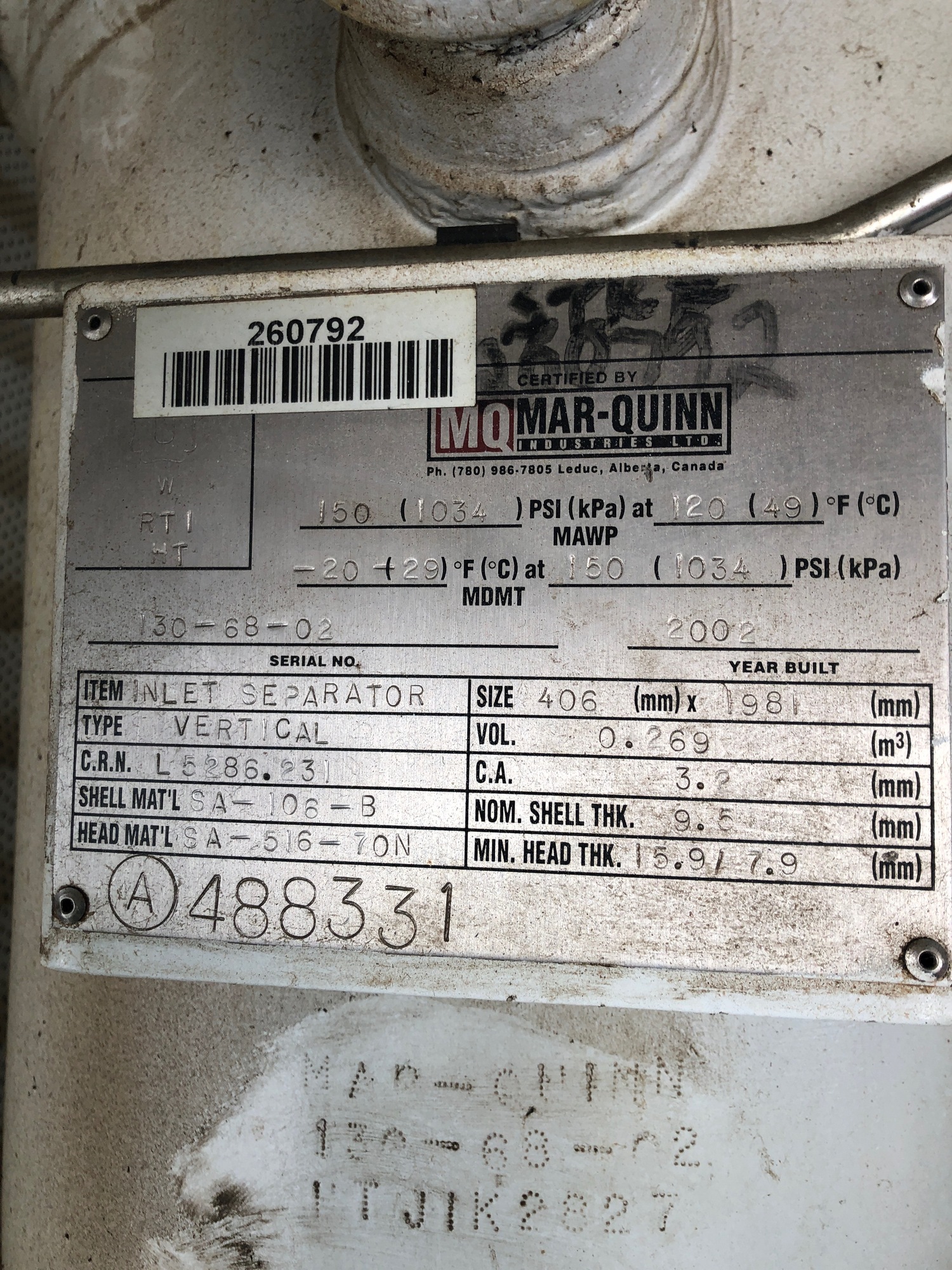 MAWP (PSI) 0