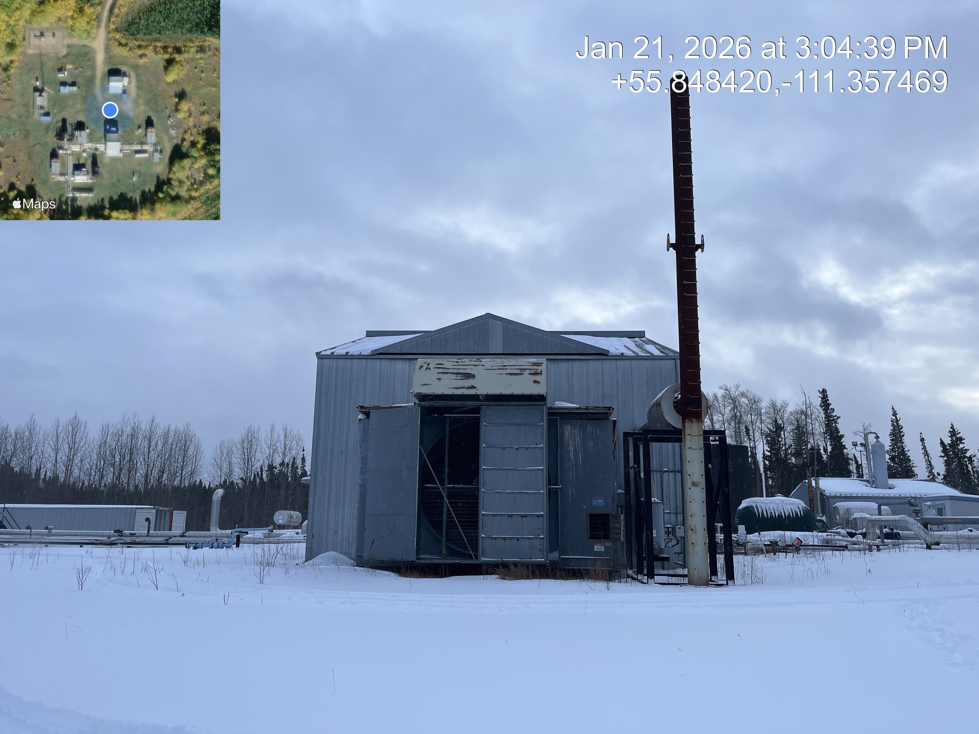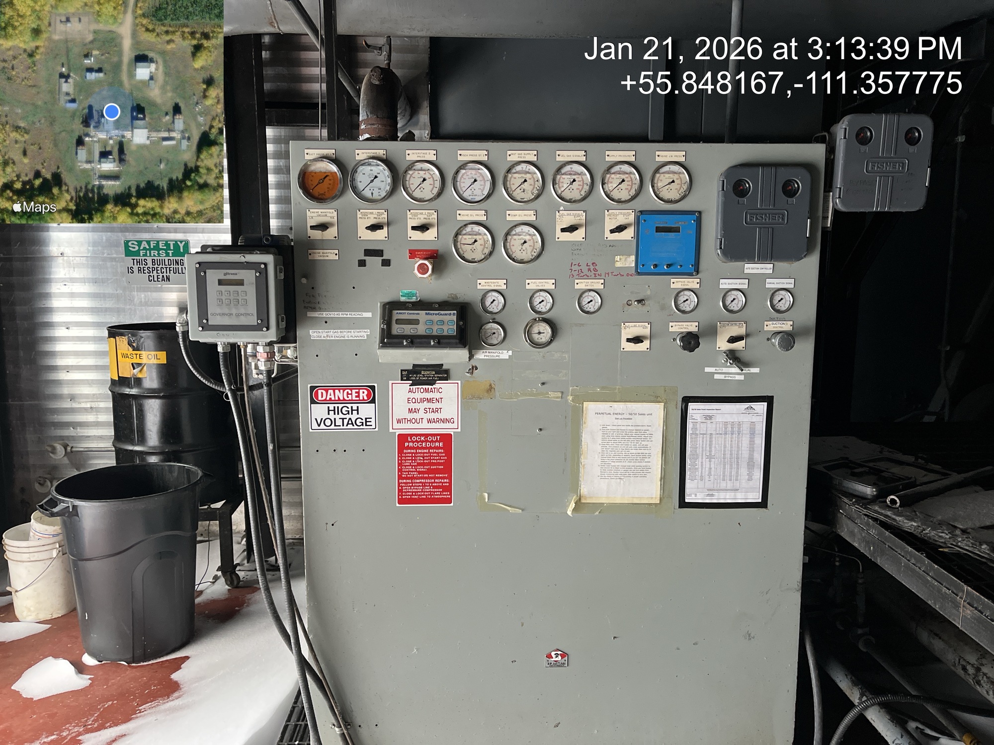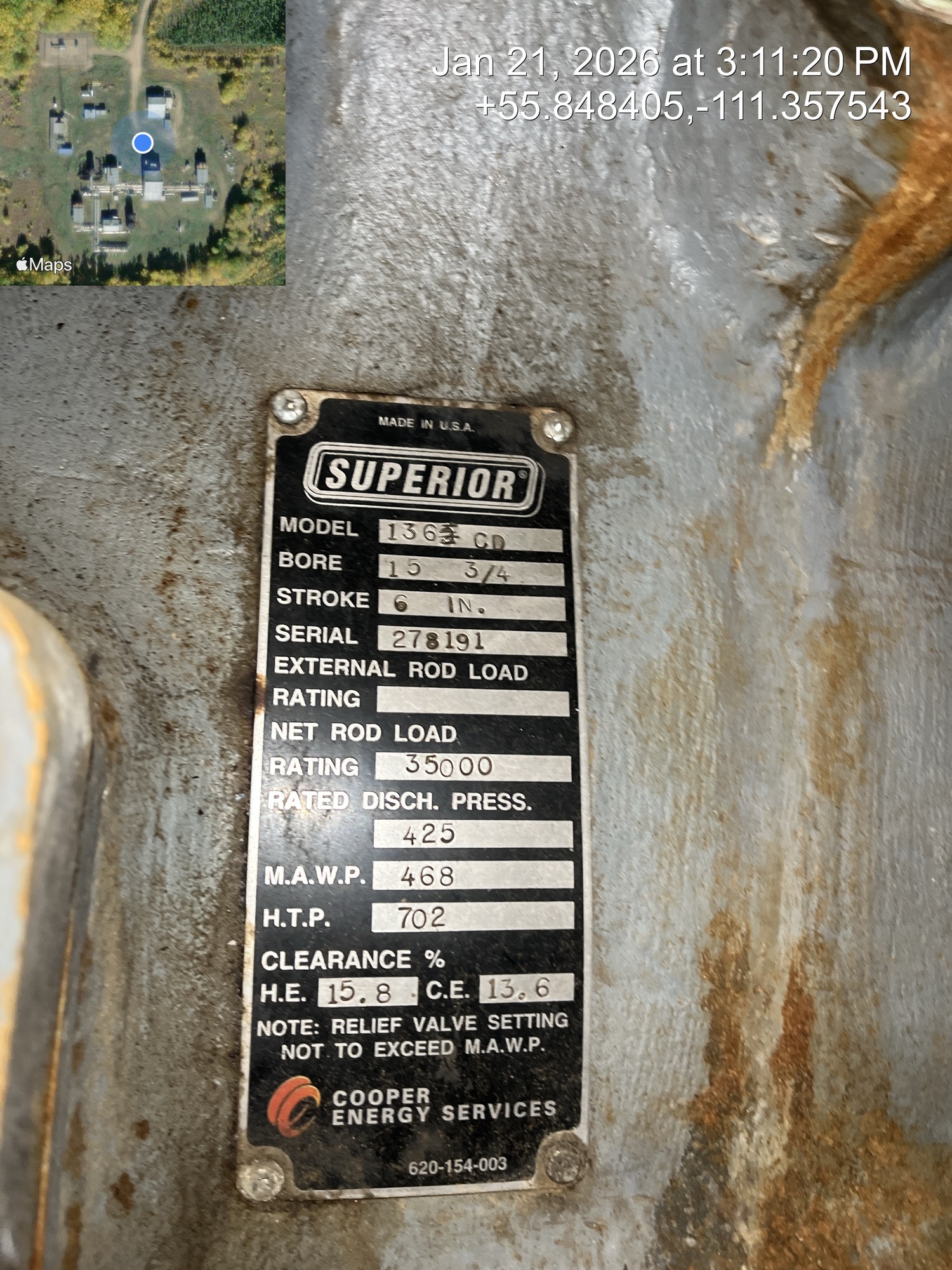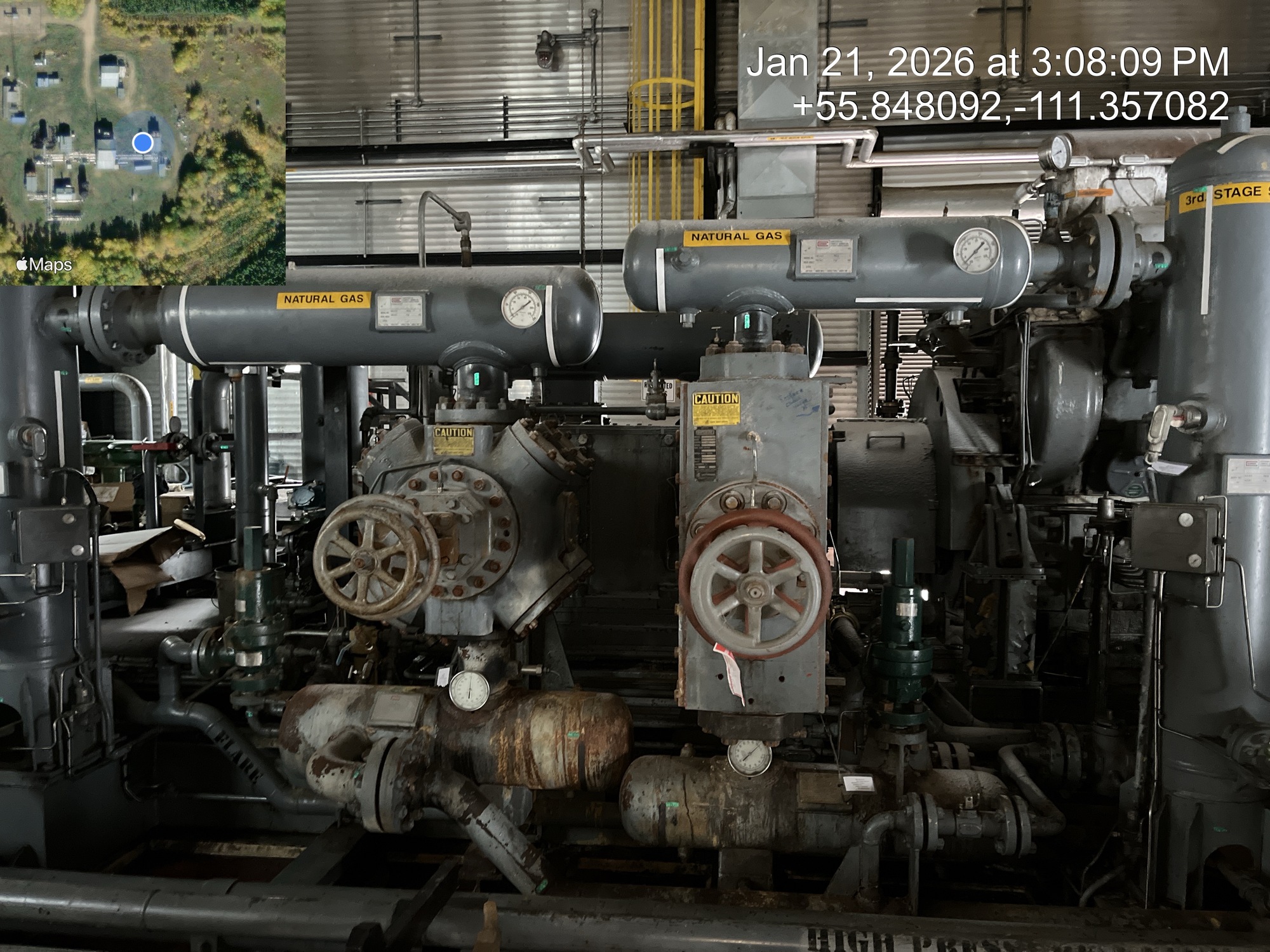 4 stage compressor (ID plate illegible) with a 2000 HP Superior CleanBurn II V12 gas engine inside of a 66.5’x50’ building with a 5 ton crane, located at 12-16-079-09W4 (Facility)