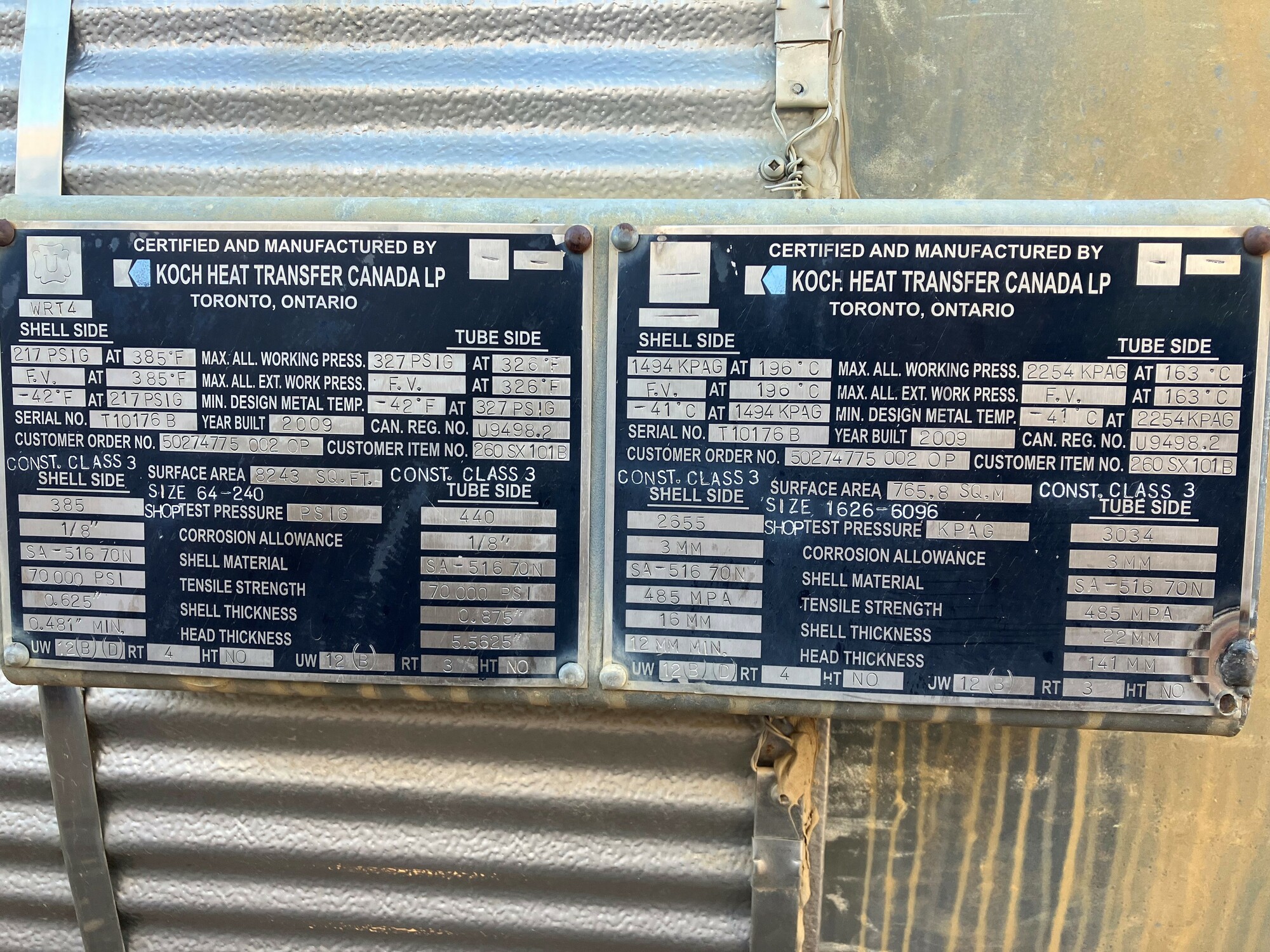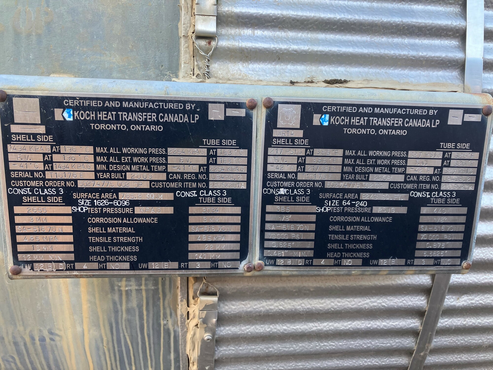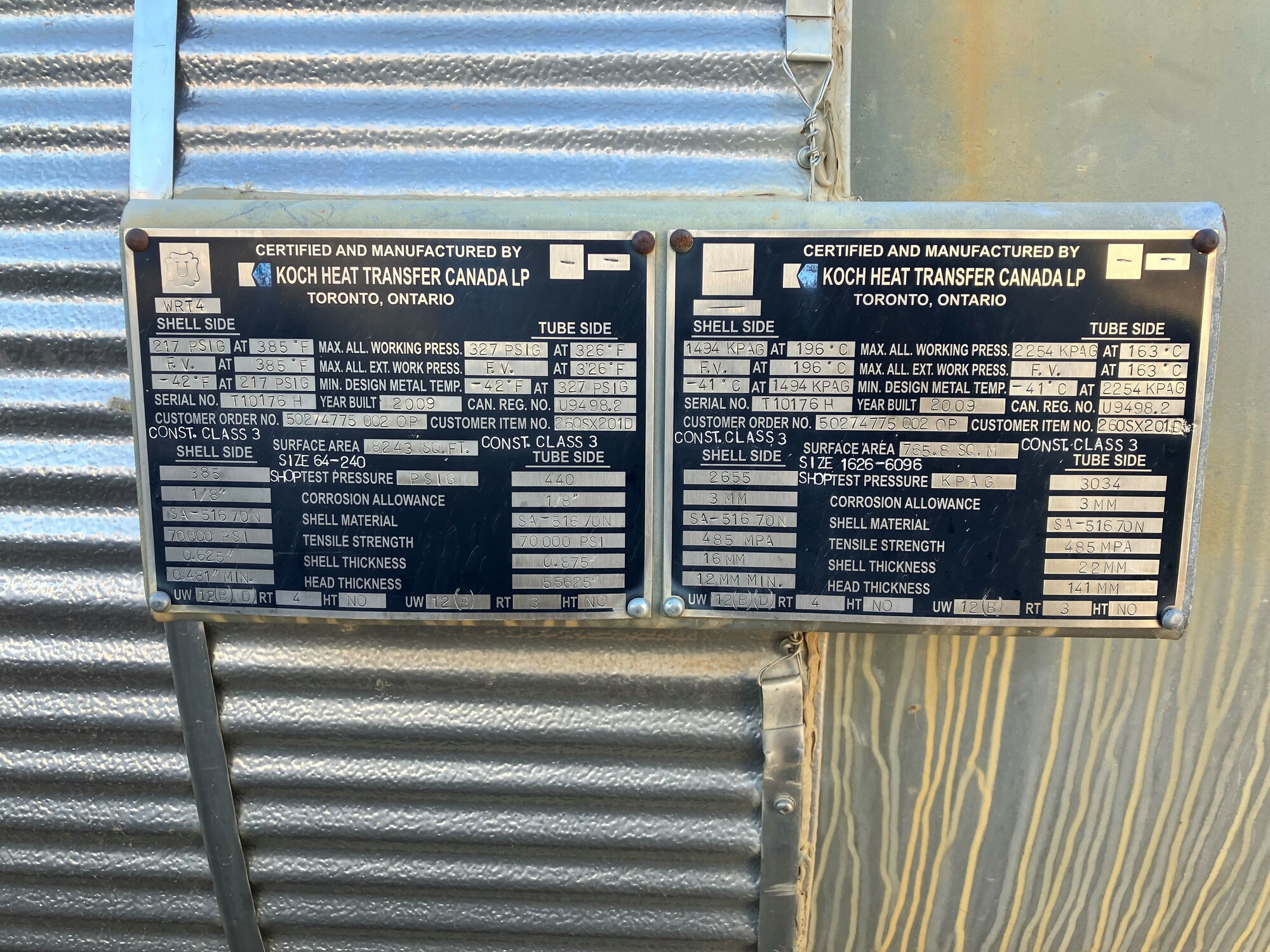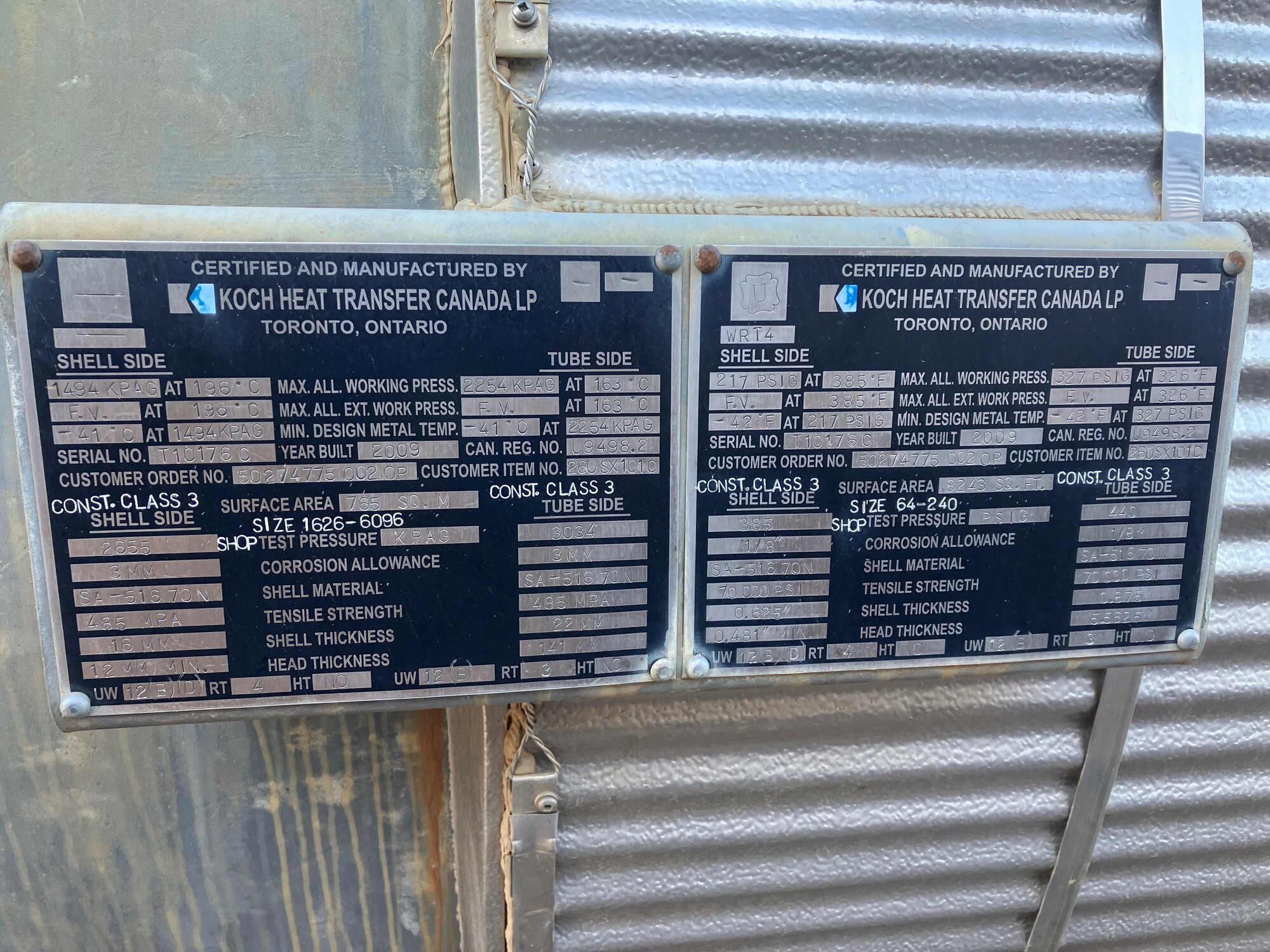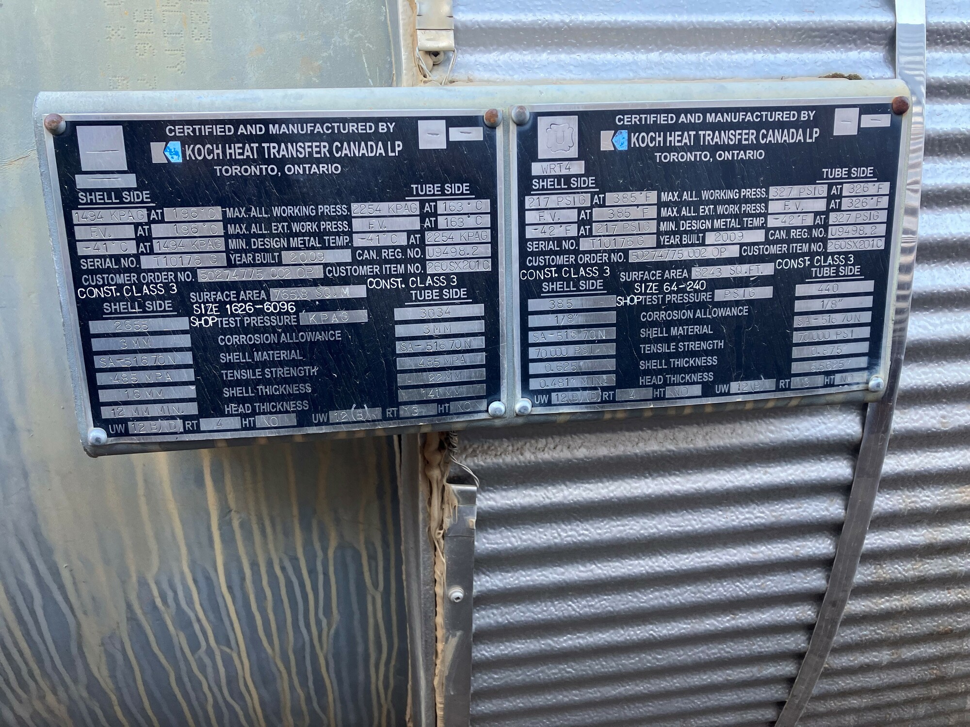 2. The exchangers were built in Ontario in 2009 and have valid CRN registration for Alberta but would require ABSA A# stamping prior to service.