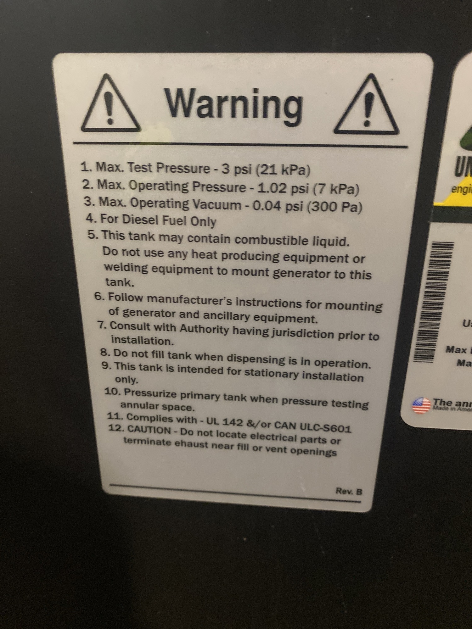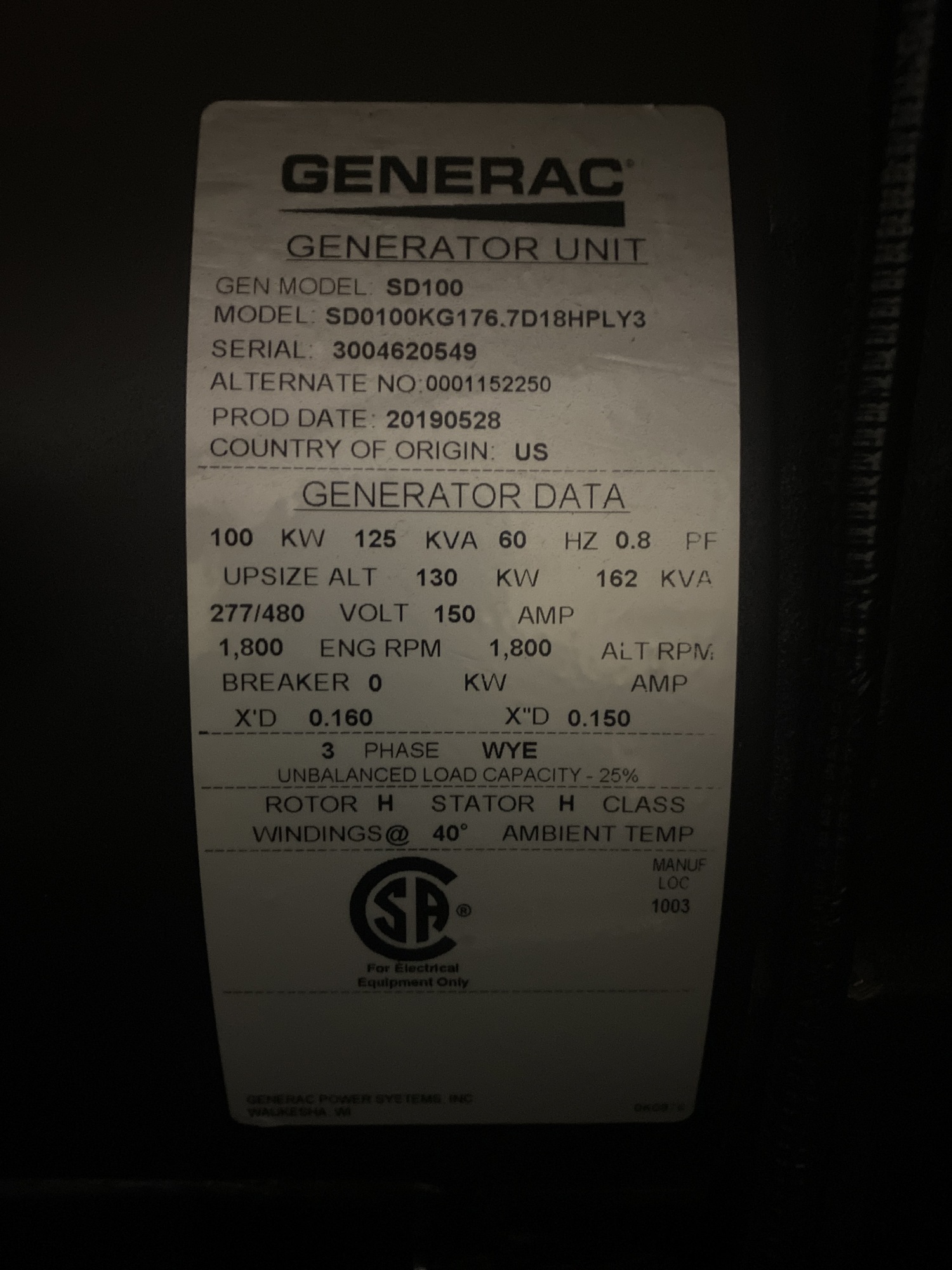 Generac Generator Unit Tag*