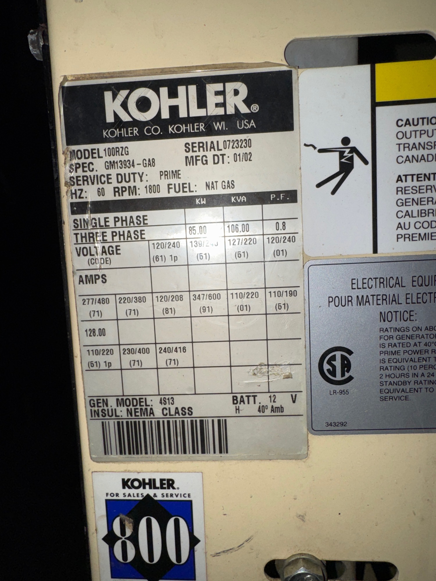 Power Rating 85 KW
