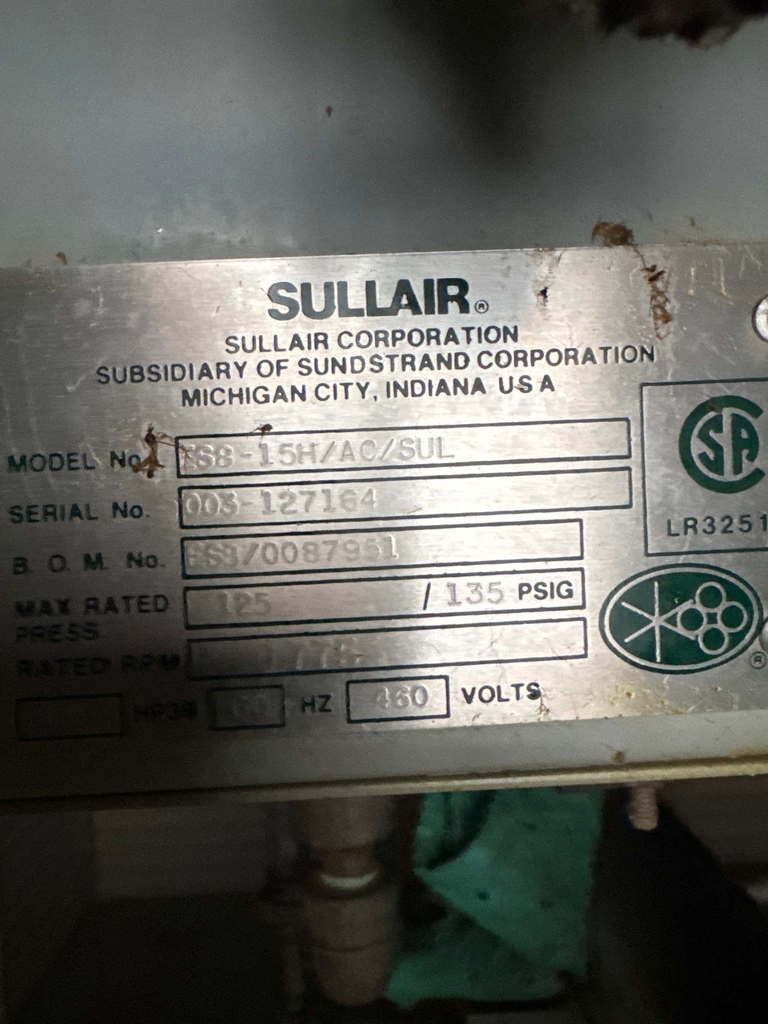 WITH SULLAIR ES8-15H/AC/SUL COMPRESSOR