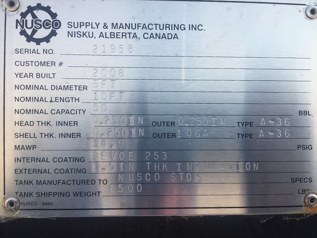 Summary Description : 50 BBL, 14.9 Psi, Internally Coated, Flare KO