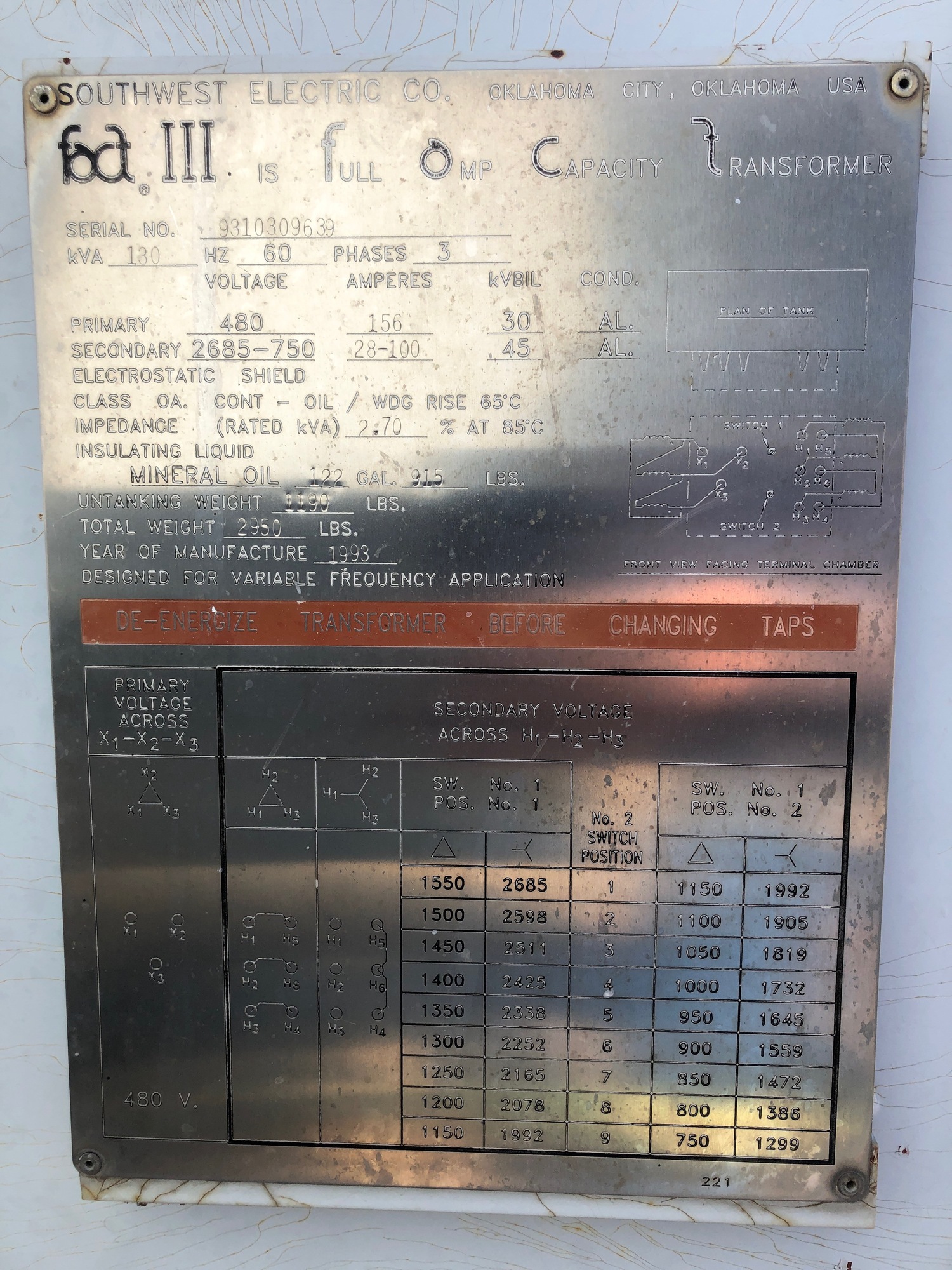 Manufacturer SOUTHWEST ELECTRIC CO.