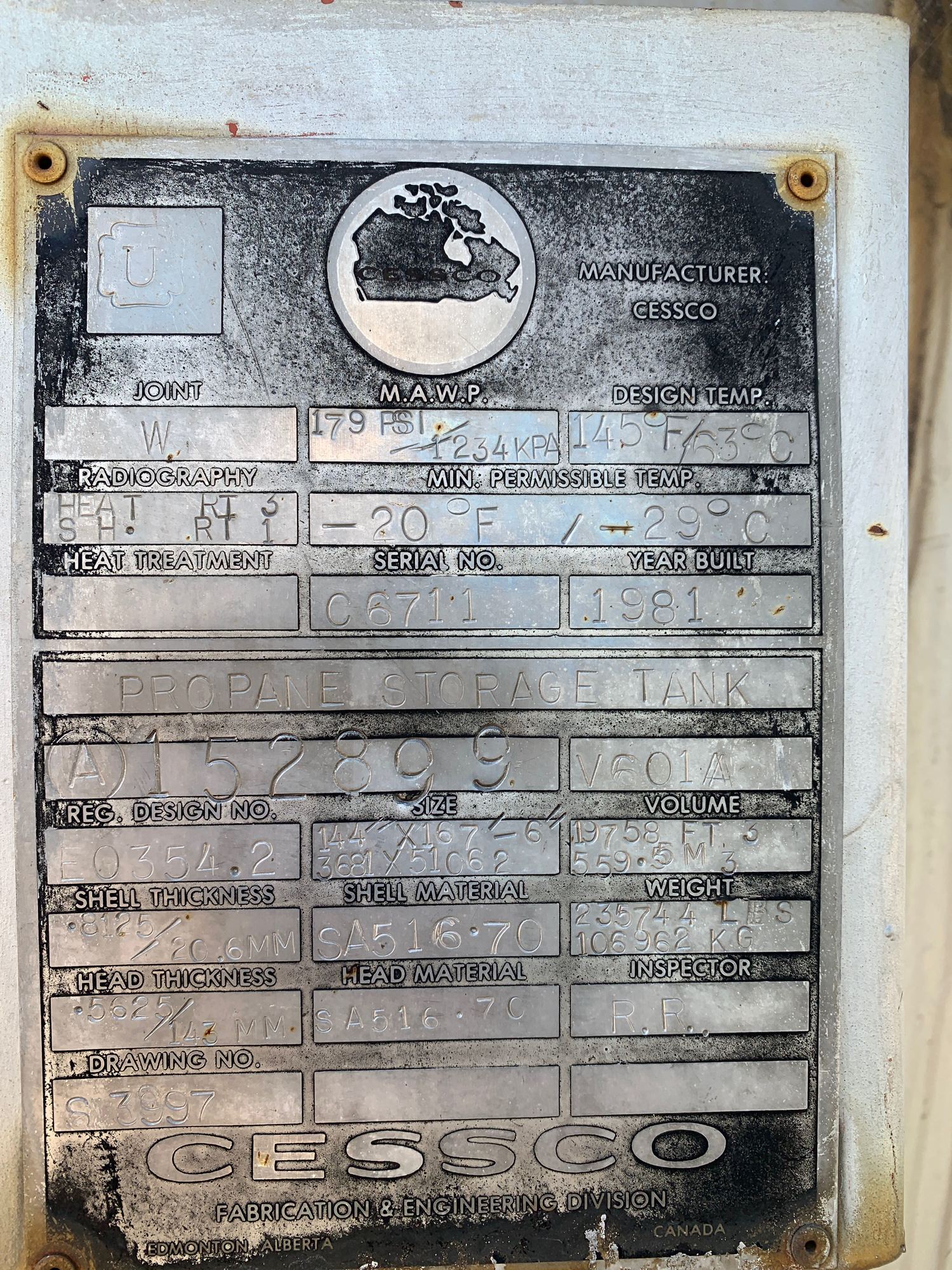 147,000 USG LPG Bullet 179 psi
