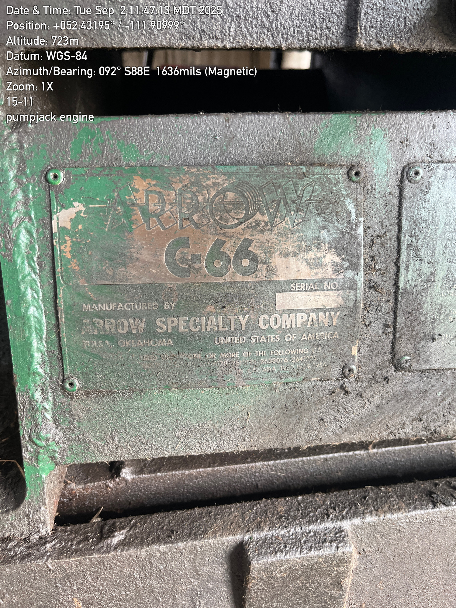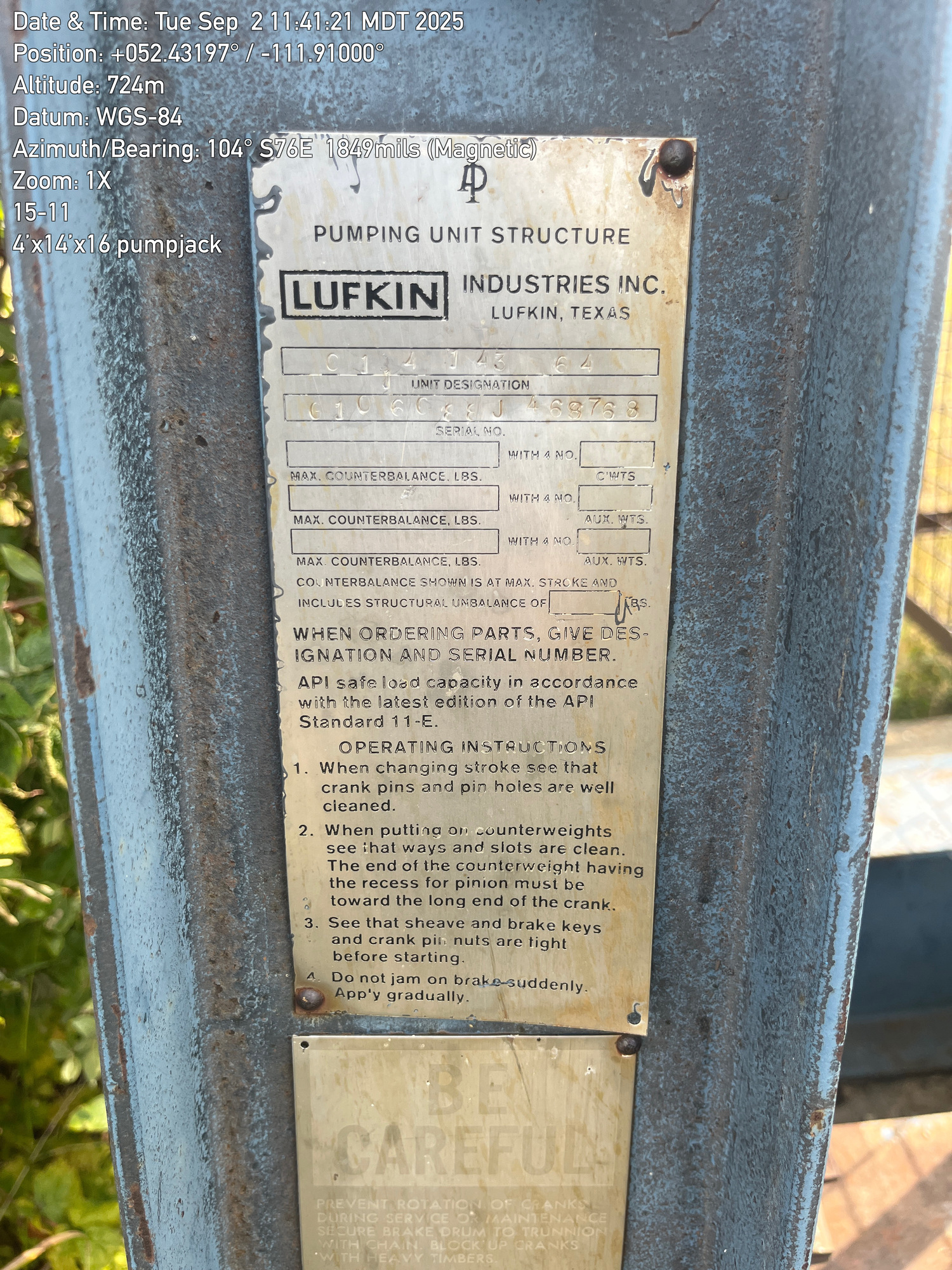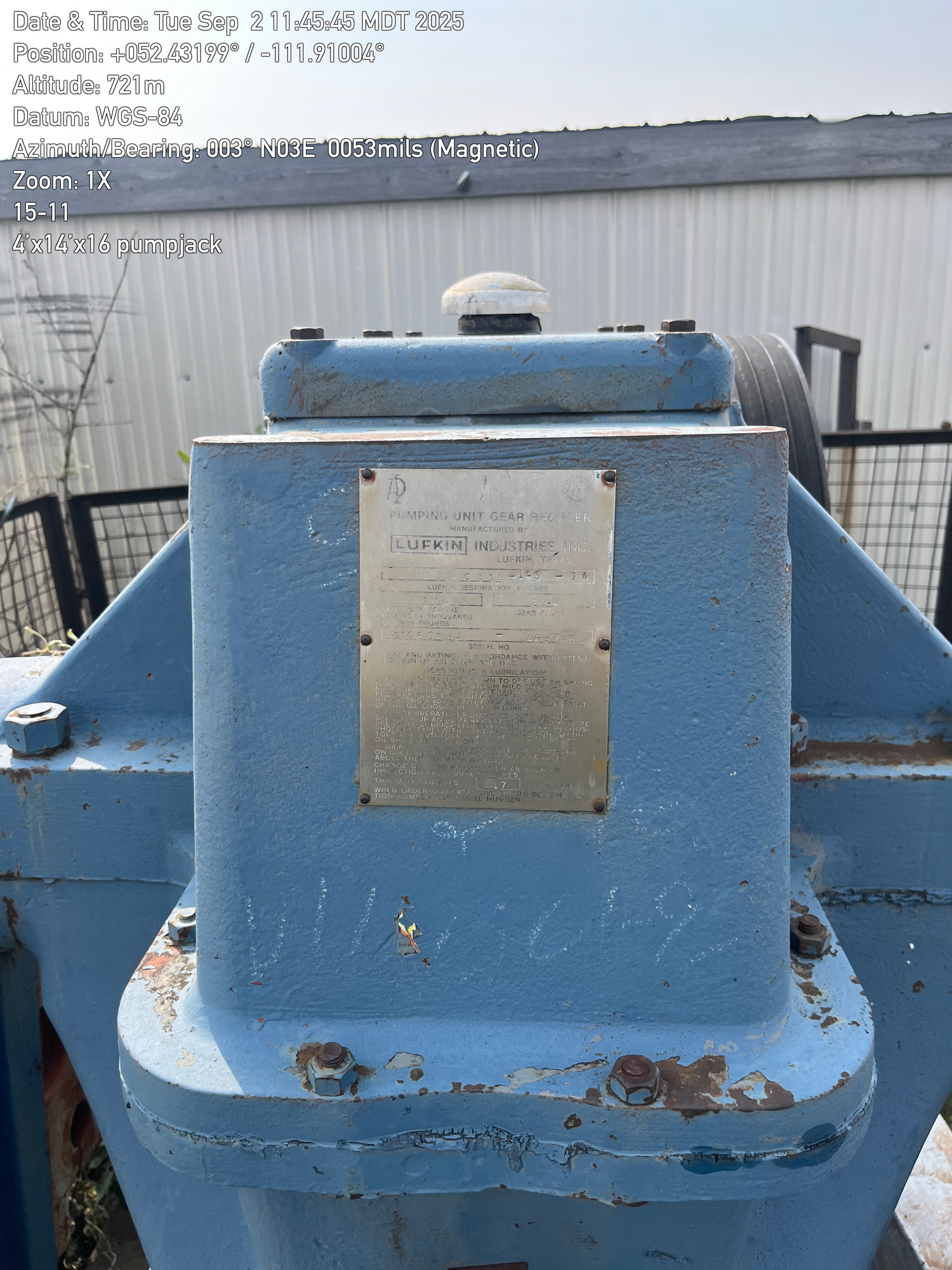 C114 143 64 Lufkin 4'x14'x16' pumpjack with 29.4 gear reducer and C-66 Arrow engine located at 15-11-040-14W4
