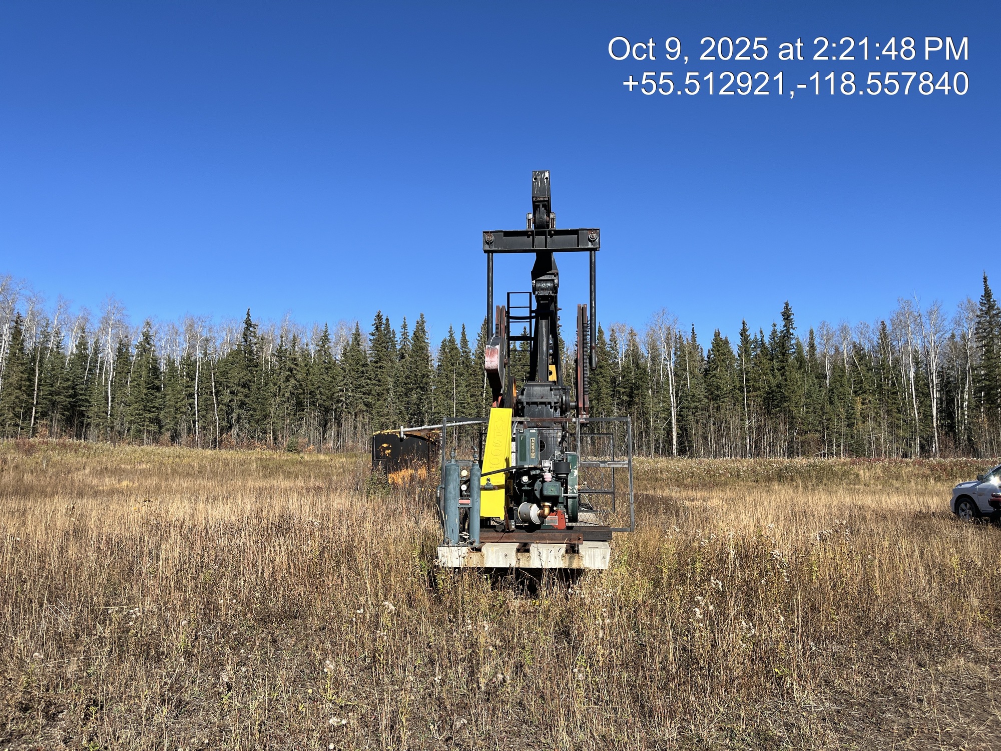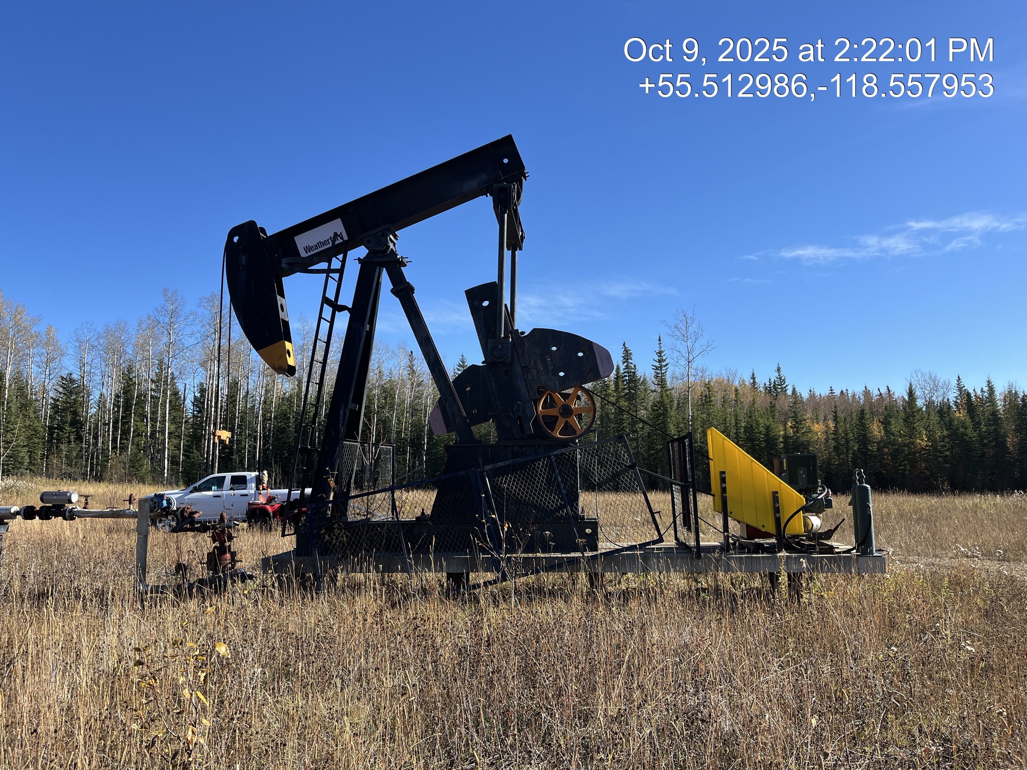 Weatherford 160-200-74 pumpjack built in 2008 with a 29.774 gear reducer and 13 HP Arrow C-66 engine on 6' x 26' cement pad on piles located at 11-21-075-04W6 (100/10-21 downhole)