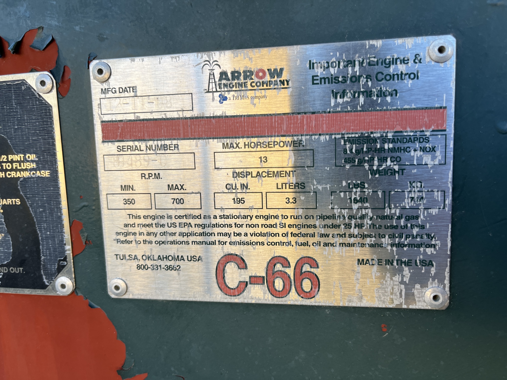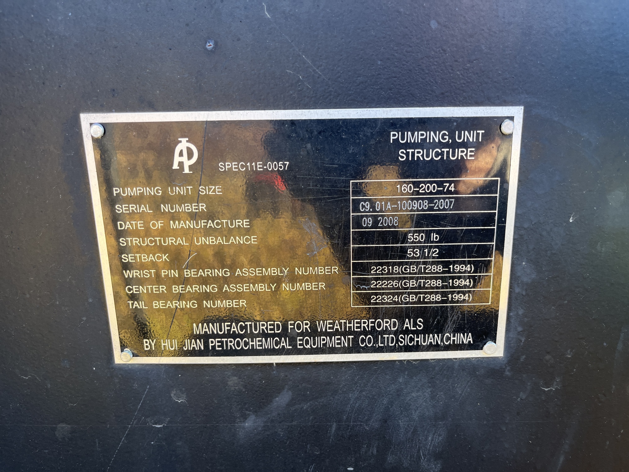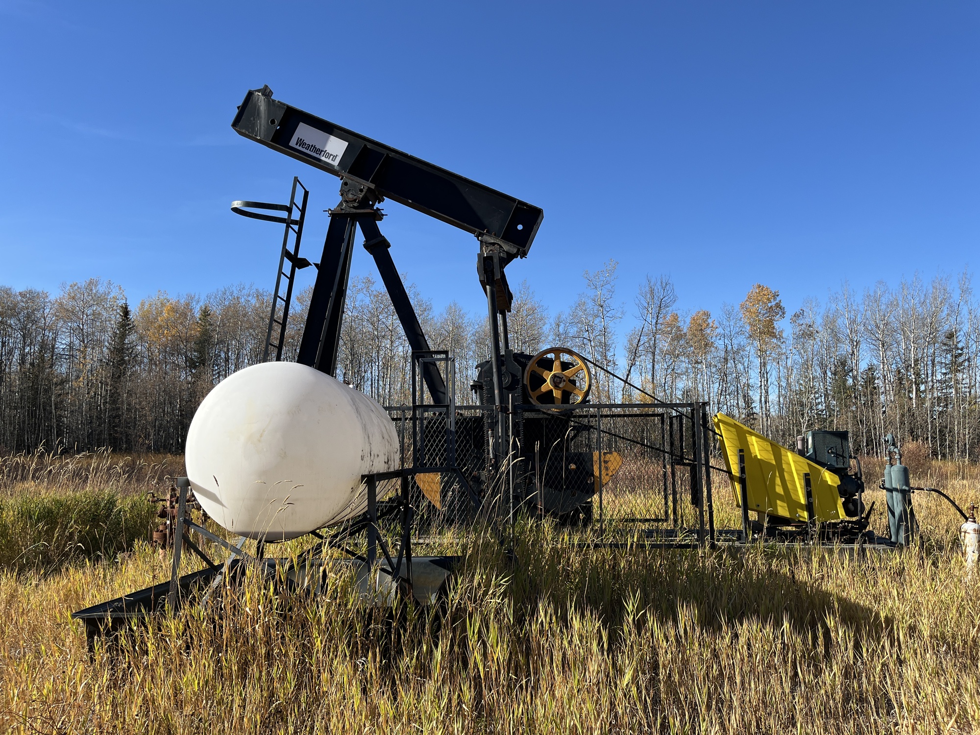 160-200-47 Weatherford pumpjack built in 2008 with a 29.774 gear reducer and a 13 HP Arrow C-66 engine located at 16-16-075-04W6 (100)