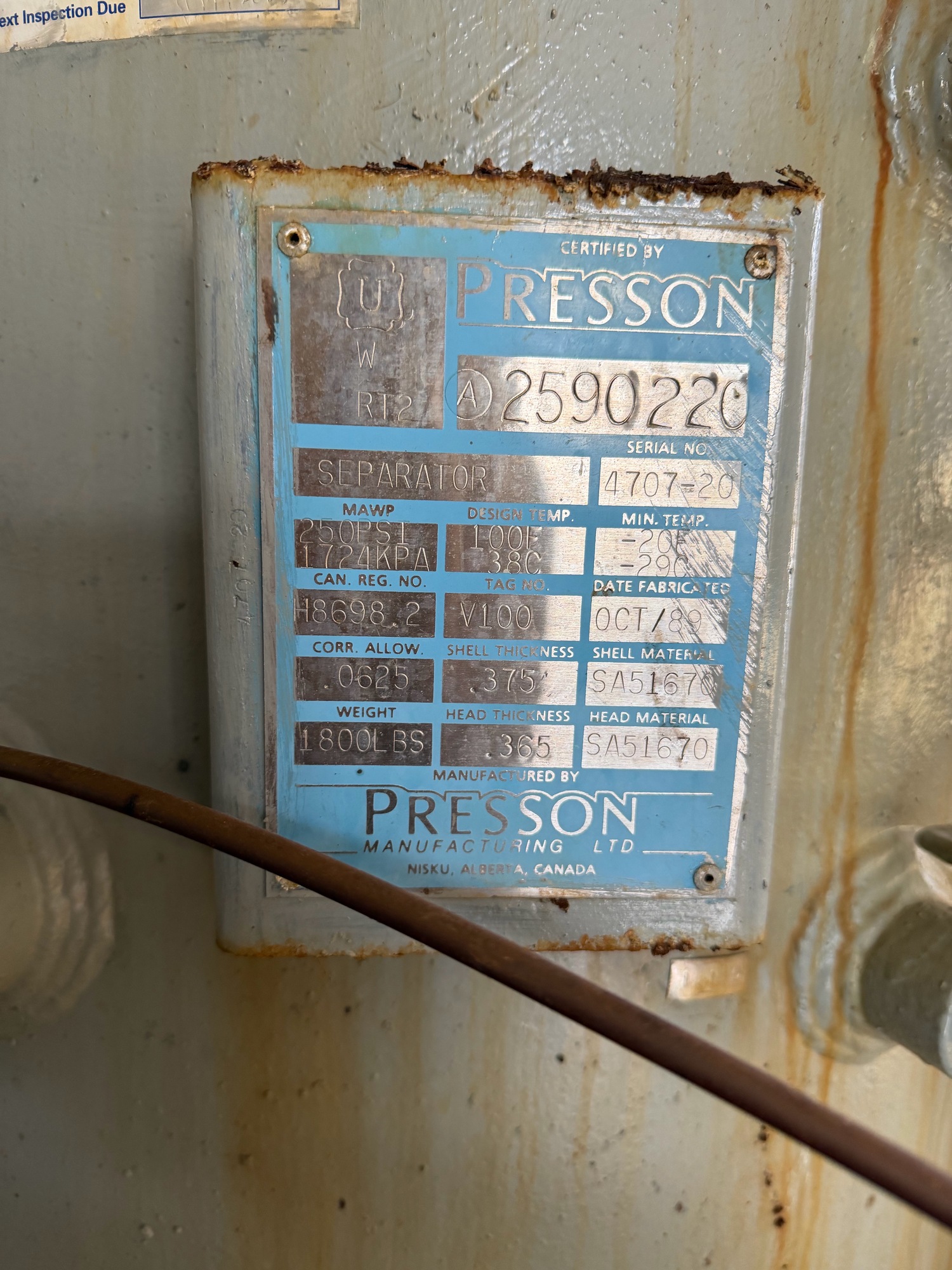 MAWP (PSI) 250