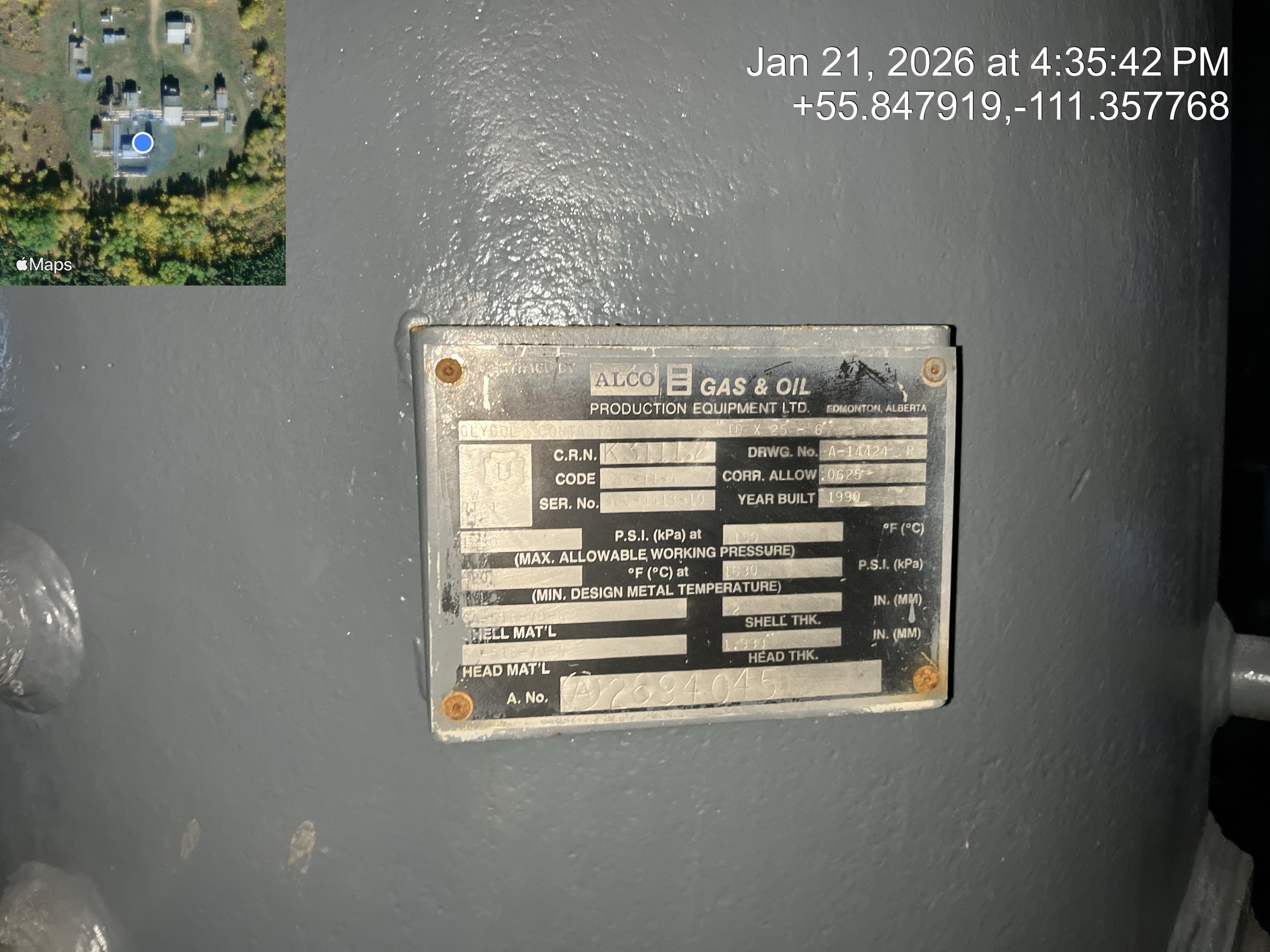 48" x 14’ Inlet Separator built in 1990 with a contactor, flash tower, and two heated (600,000 BTU) Triethylene glycol tanks inside of a 40’x25’ located at 12-16-079-09W4 (Facility)