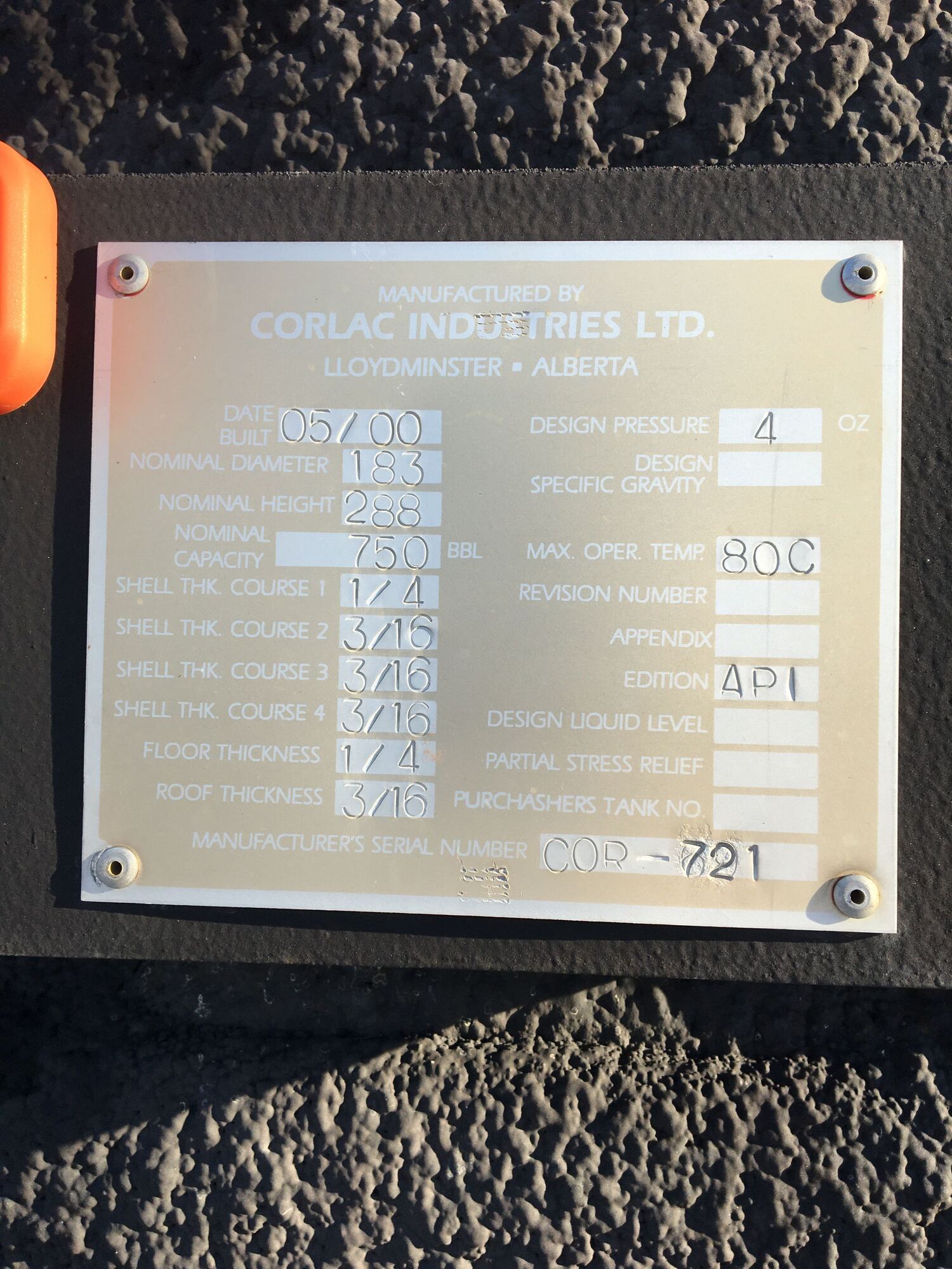 Tank Capacity (BBL) 750