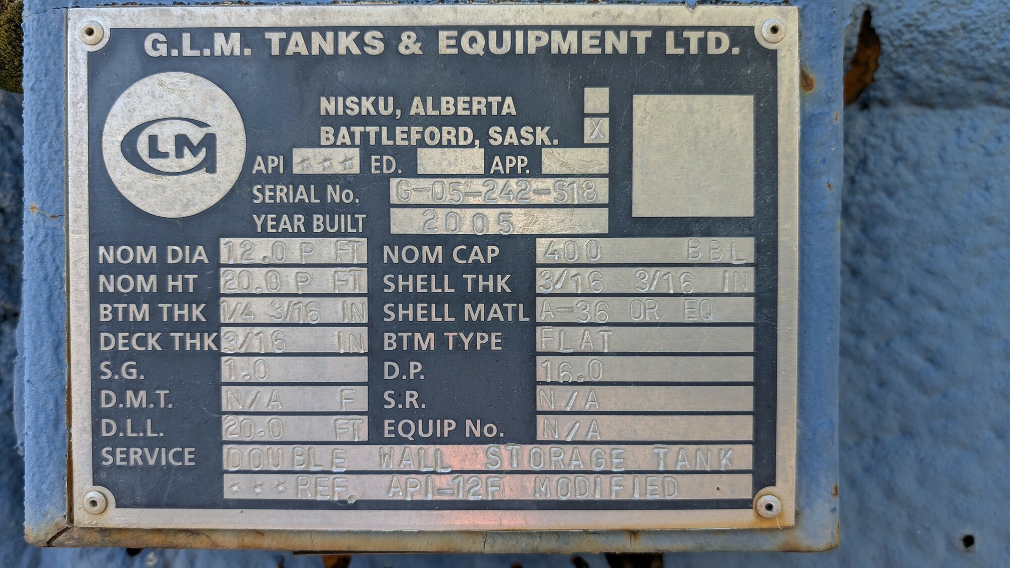 Tank Capacity (BBL) 400