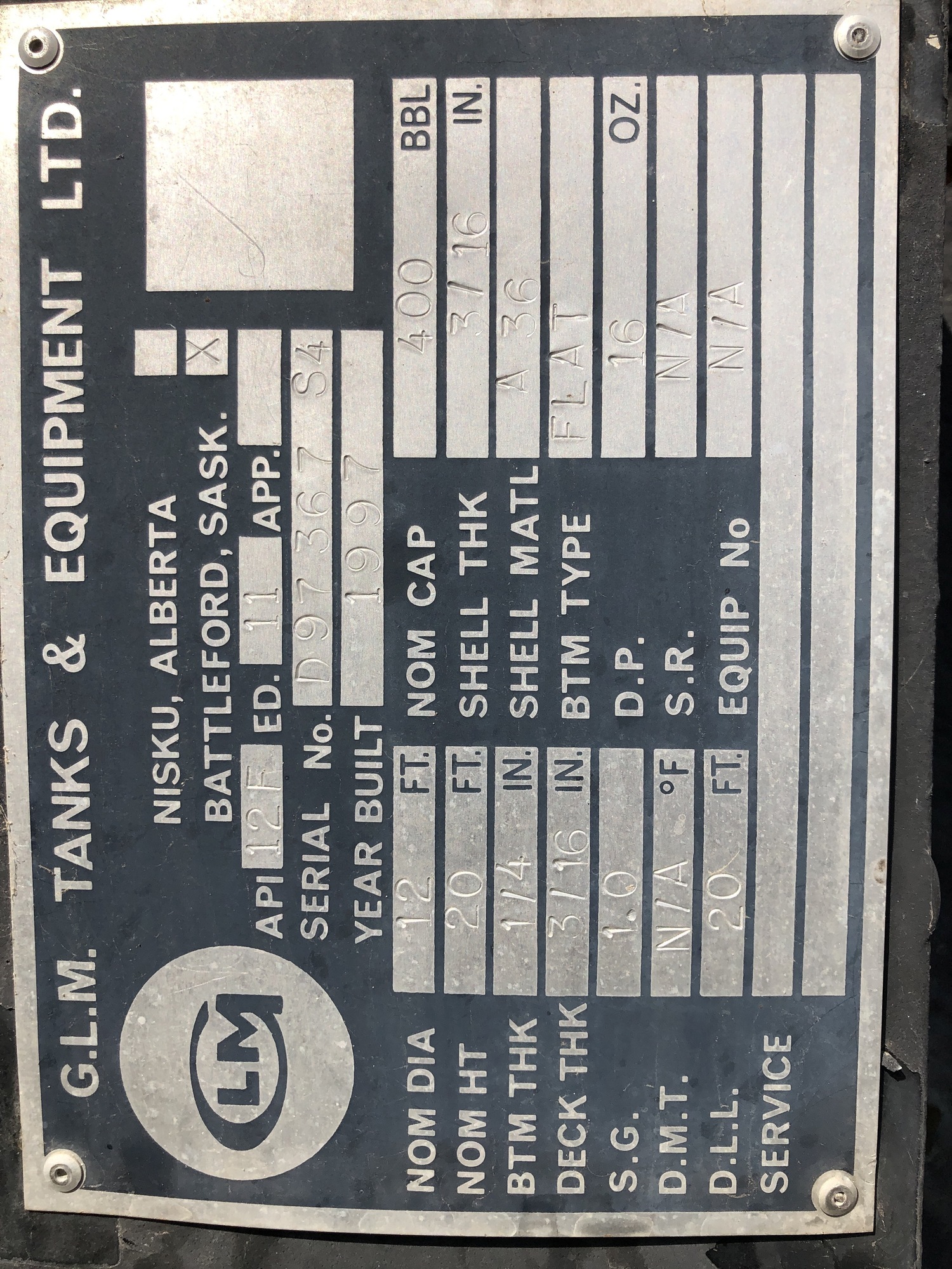 Tank Capacity (BBL) 400