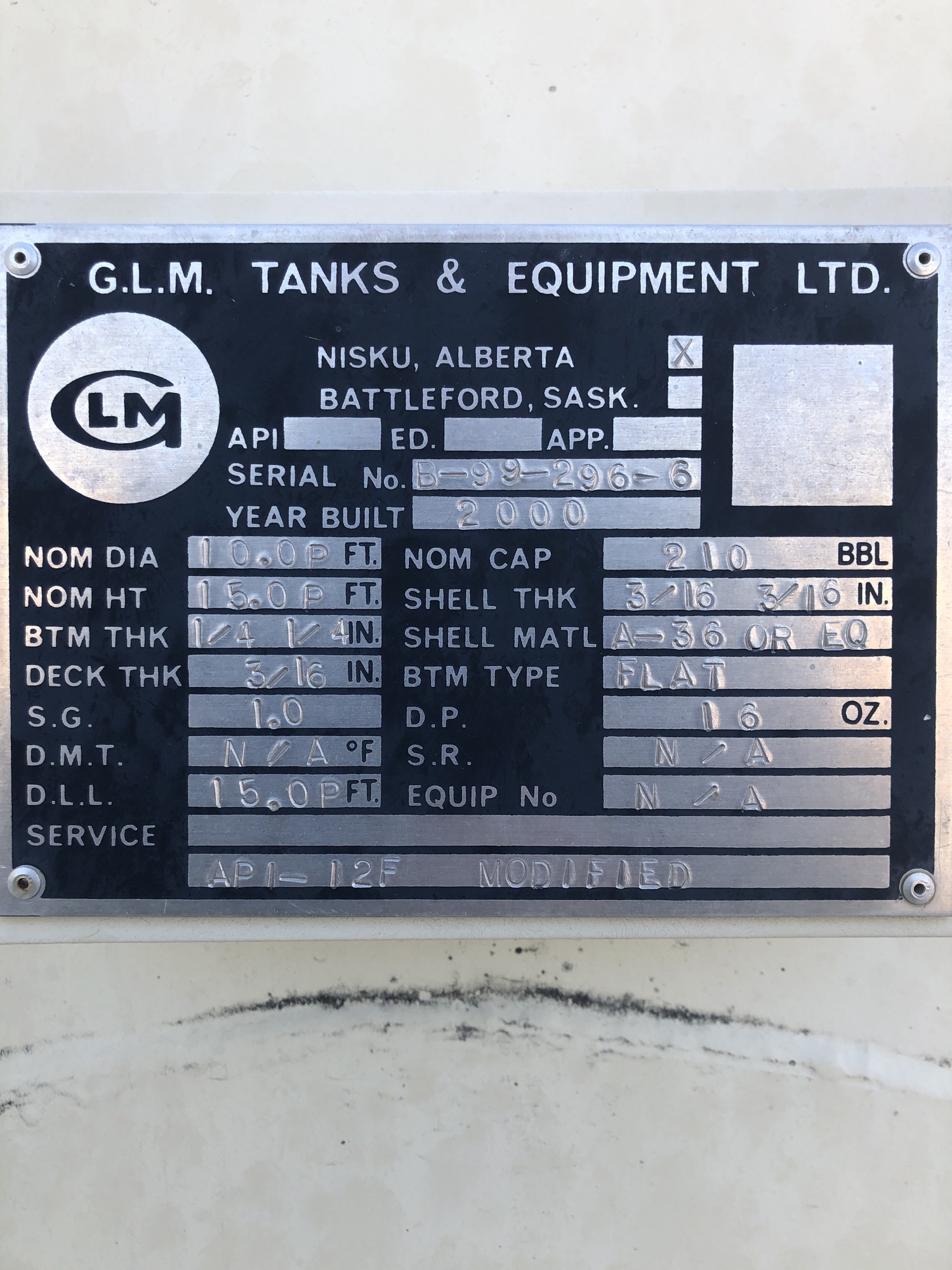 Tank Capacity (BBL) 210