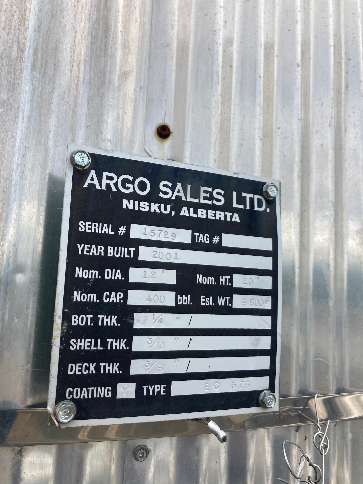 400 bbl insulated coated tank