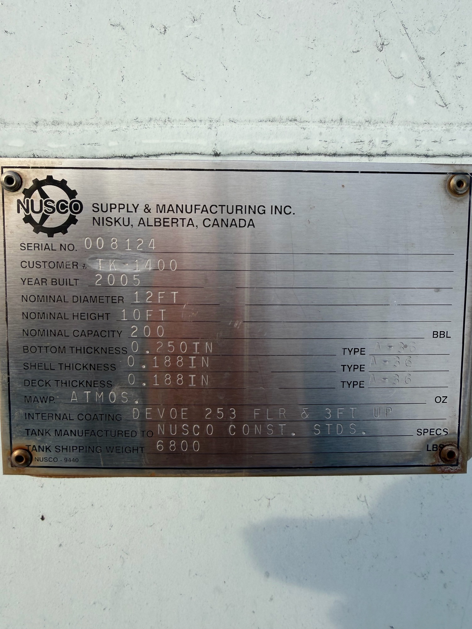 Tank Capacity (BBL) 200