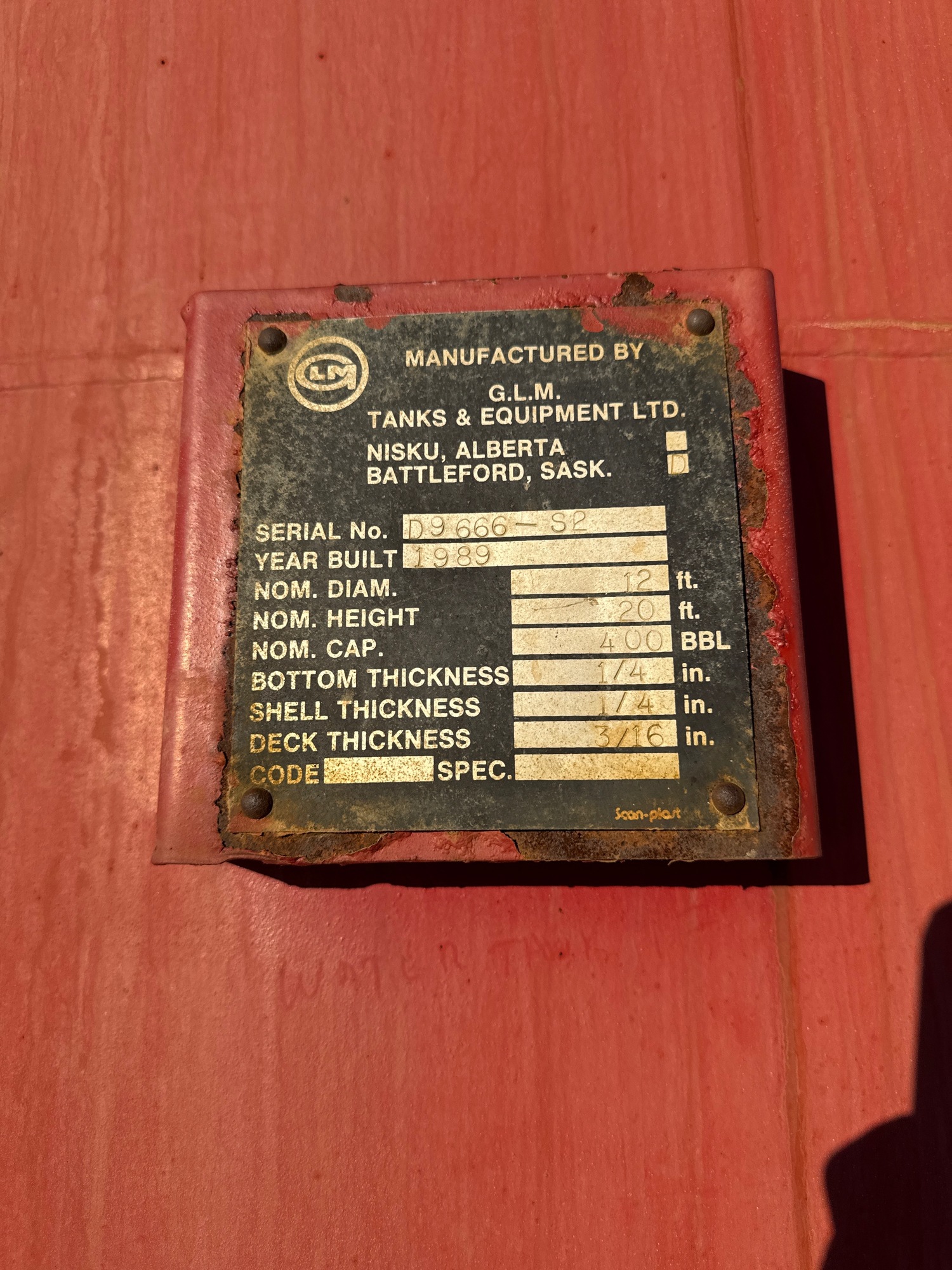 400 bbl TANK