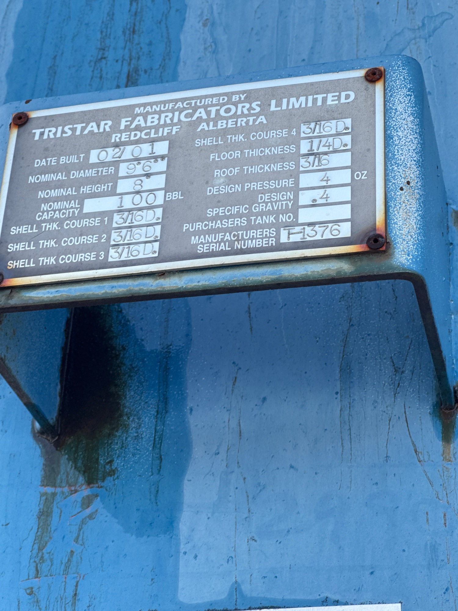Tank Capacity (BBL) 100