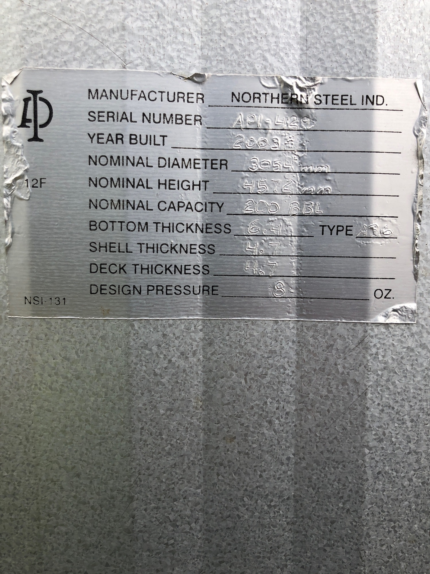 Tank Capacity (BBL) 200