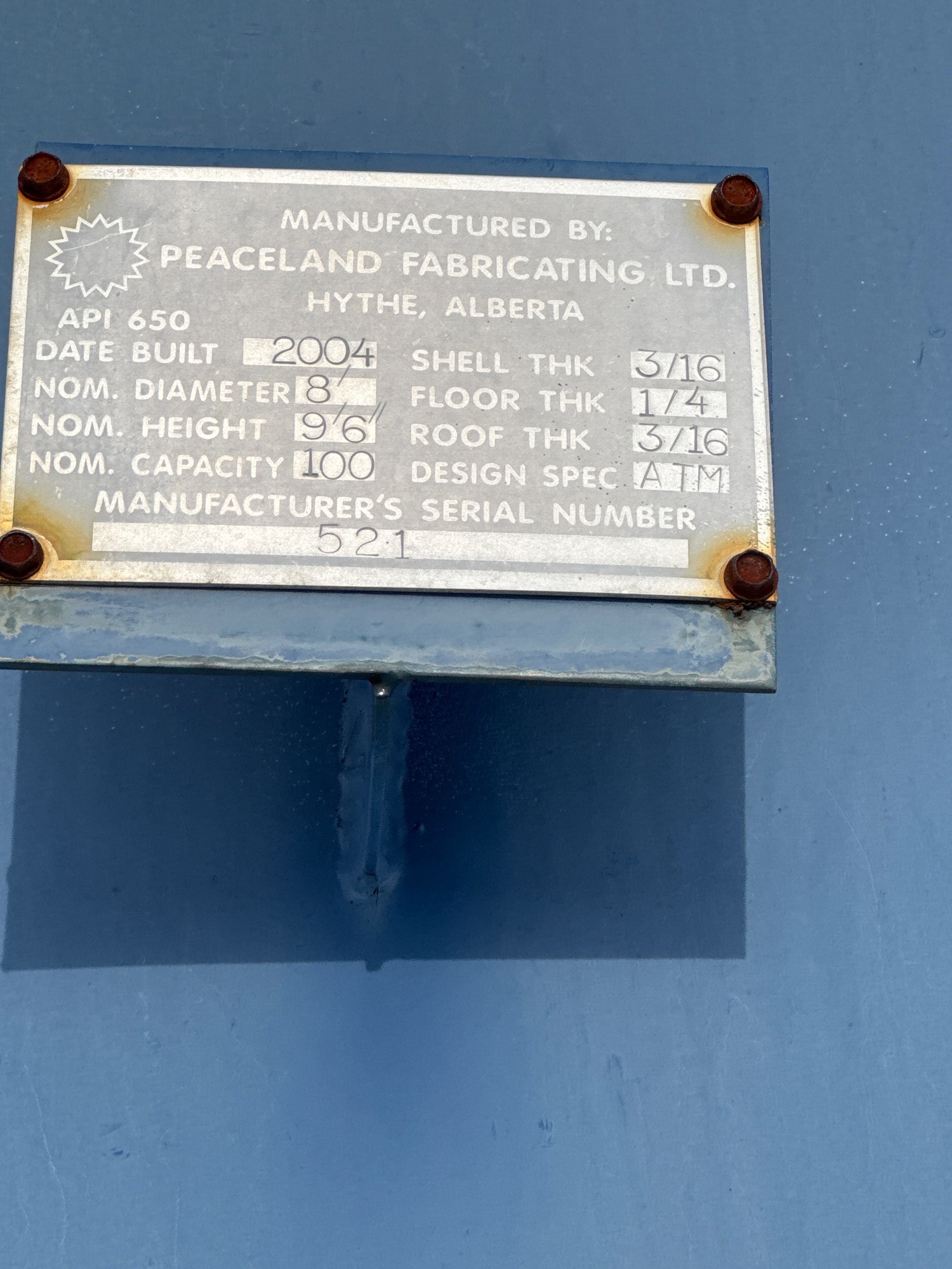 Tank Capacity (BBL) 100
